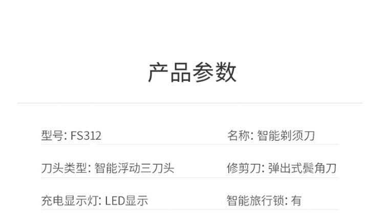 飛科剃須刀電動(dòng)刮胡刀 全身水洗男士剃胡須刀 快充大功率FS312