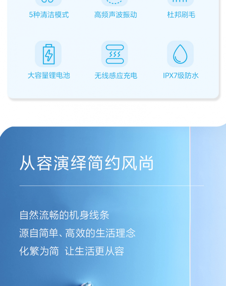 詳細(xì)信息 產(chǎn)品簡(jiǎn)介: 1.高頻聲波震動(dòng),大容量鋰電池。 2.5種潔牙模式,杜邦刷毛 3.無線感應(yīng)充電,IPX7級(jí)防水,自帶2個(gè)雙頭 4.震動(dòng)頻率31200次/分鐘。充滿電續(xù)航 時(shí)間約90分鐘。 ![]() ![]() ![]() ![]() ![]() ![]() ![]() ![]() ![]() ![]() ![]() ![]() ![]() ![]() ![]() ![]() ![]() ![]() ![]() ![]()  |