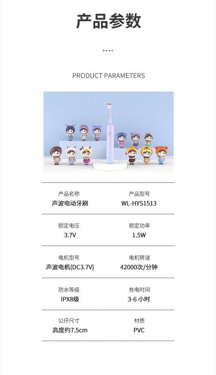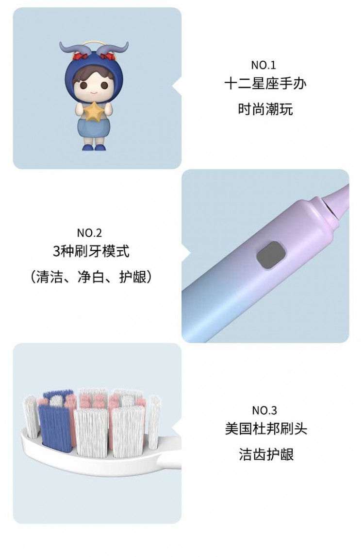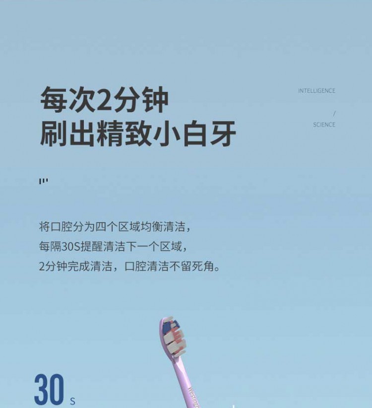 4.變色刷毛,3個月定時(shí)提醒更換牙刷頭。