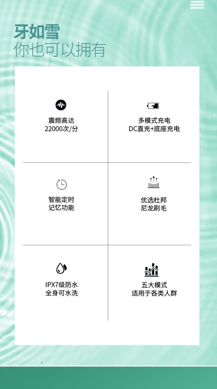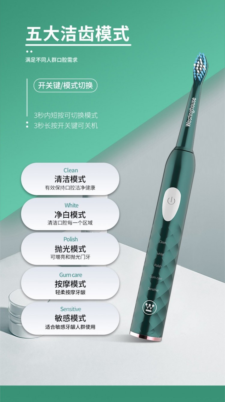 1.5種刷牙模式(美白,清潔,敏感,拋光和按摩)提供不同的口腔護(hù)理需求;