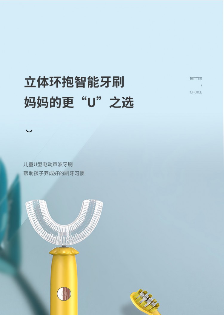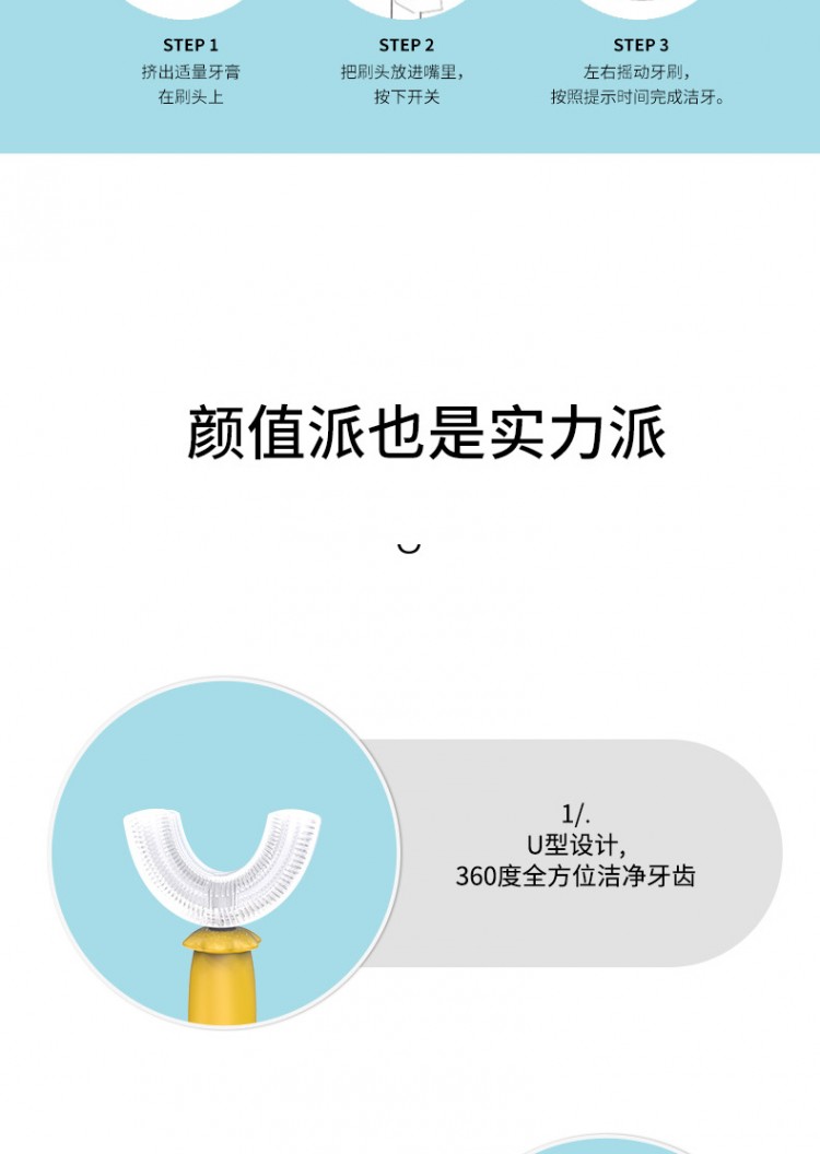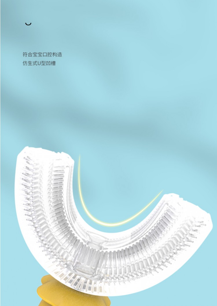 1.U型設(shè)計(jì),360度潔凈牙齒,讓寶寶牙齒白凈閃耀;