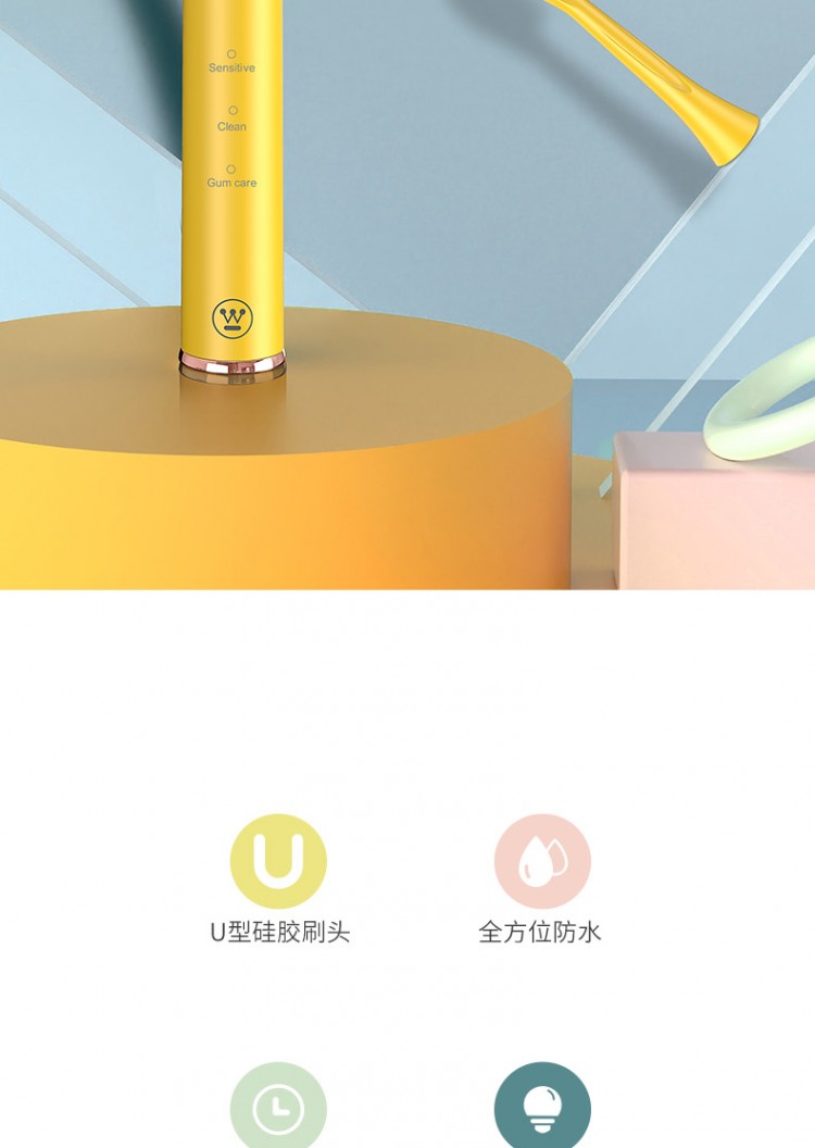 3.U型食品級(jí)抑菌液態(tài)硅膠刷頭設(shè)計(jì),Q彈耐咬不傷牙齦;