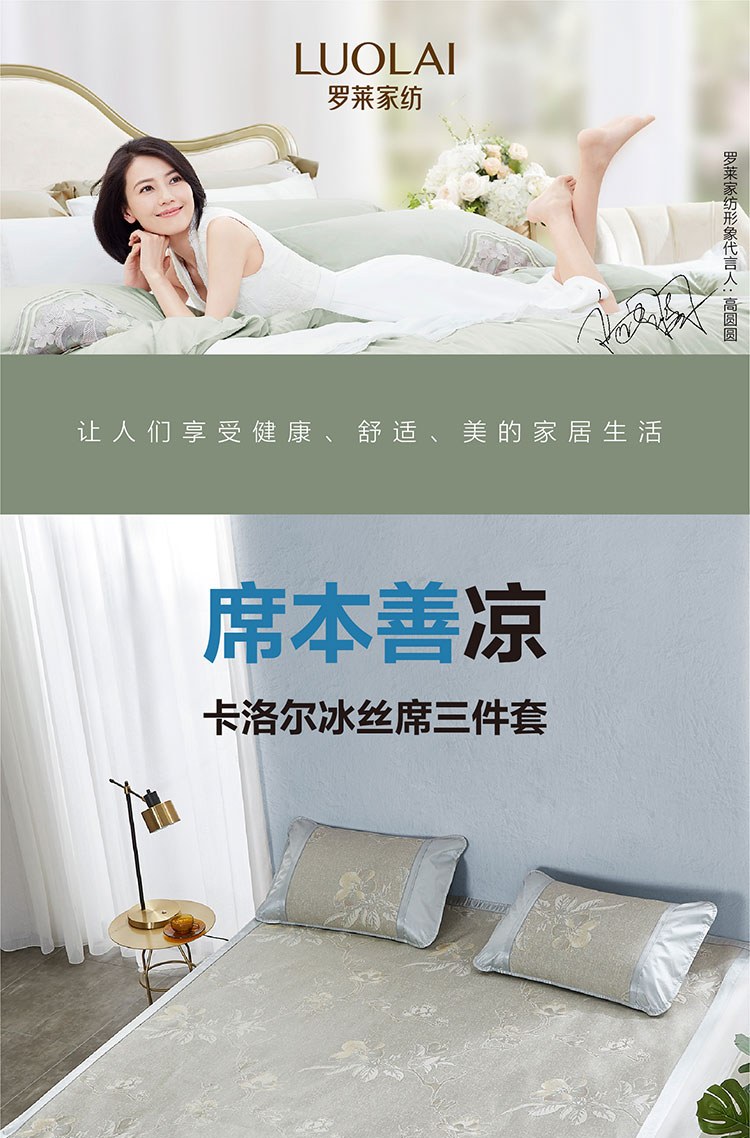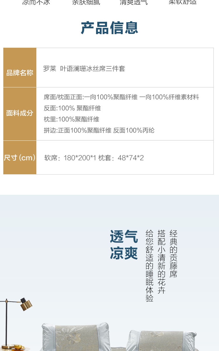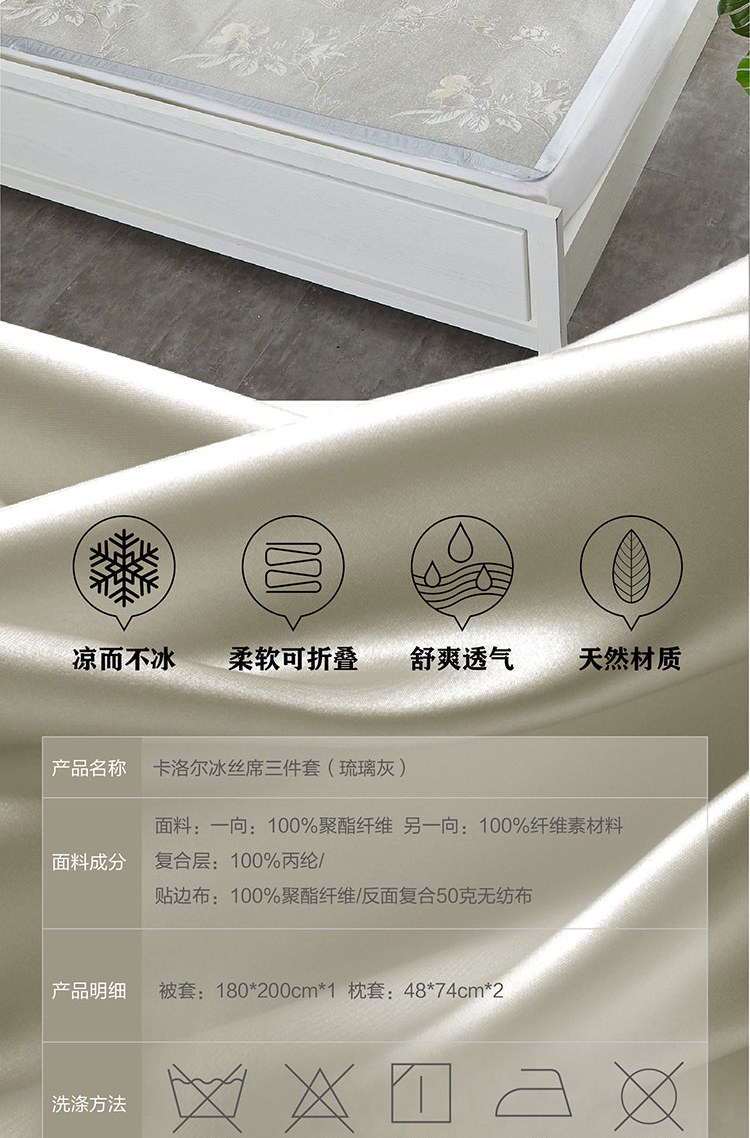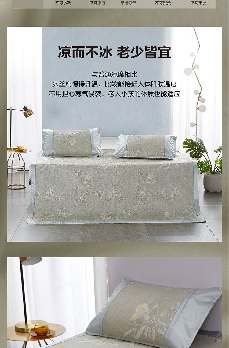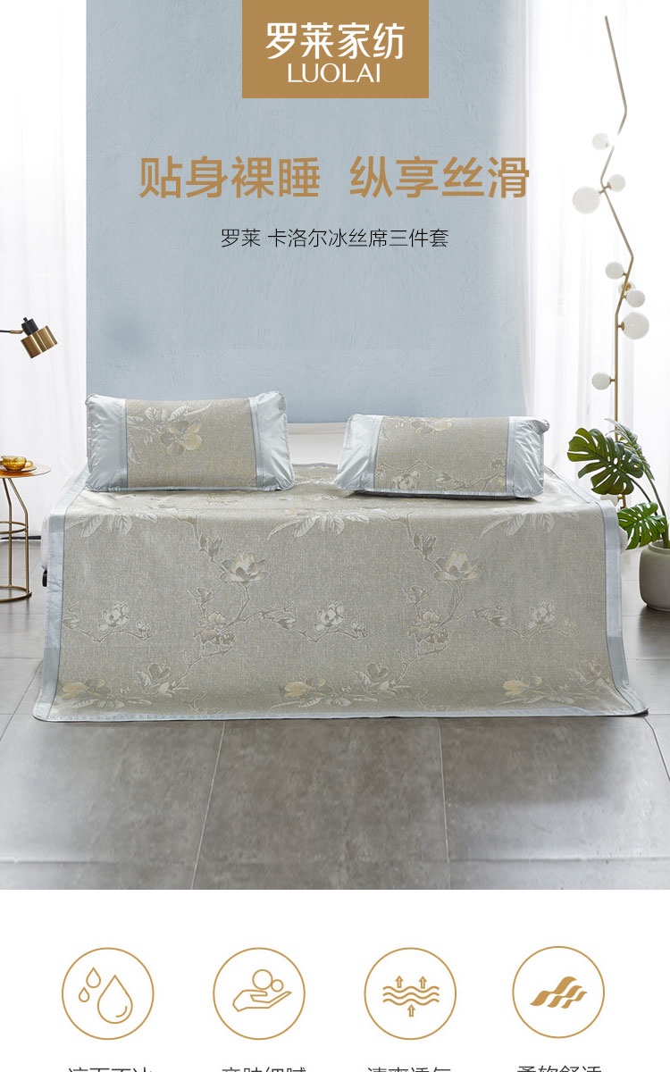 冰絲席三件套 羅萊家紡夏季涼席席子枕套組合裝