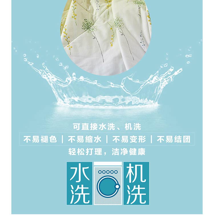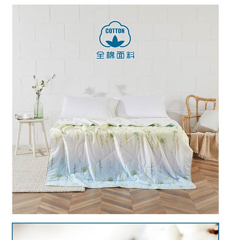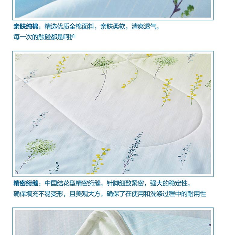 詳細信息 產(chǎn)品特點: 1.采用全棉面料,手感柔軟,親膚舒適。 2.填充中空纖維疊加的形式手感更加的柔軟舒。 3.采用黃色,白色,藍色漸變的手法,把產(chǎn)品的清新感展現(xiàn)的栩栩如生,仿佛可以聞到空氣的清香,花型采用散點式植物,更加清新自然。 ![]() ![]() ![]() ![]() ![]() ![]() ![]() ![]() ![]() ![]() ![]() ![]() |