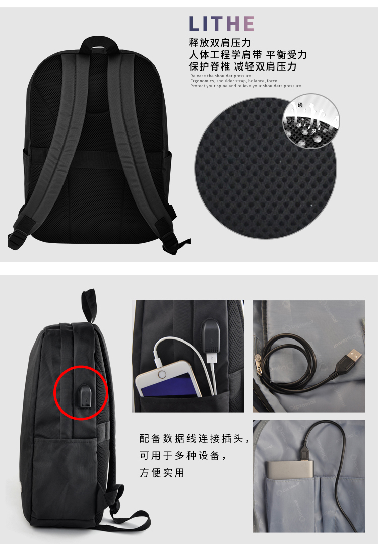 3.背包內(nèi)有電腦保護(hù)隔層、手機(jī)袋、插筆袋等多個(gè)分隔袋,方便分類放置物品;