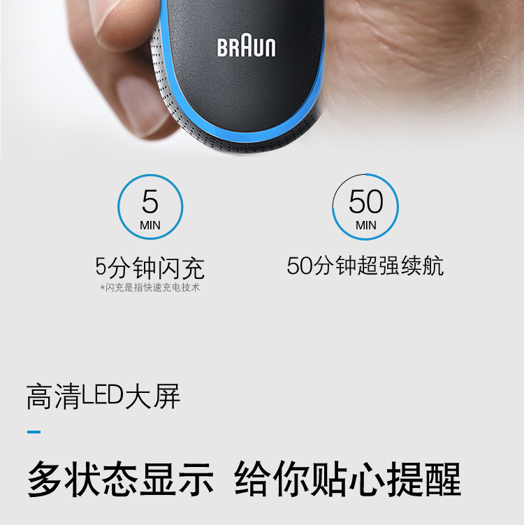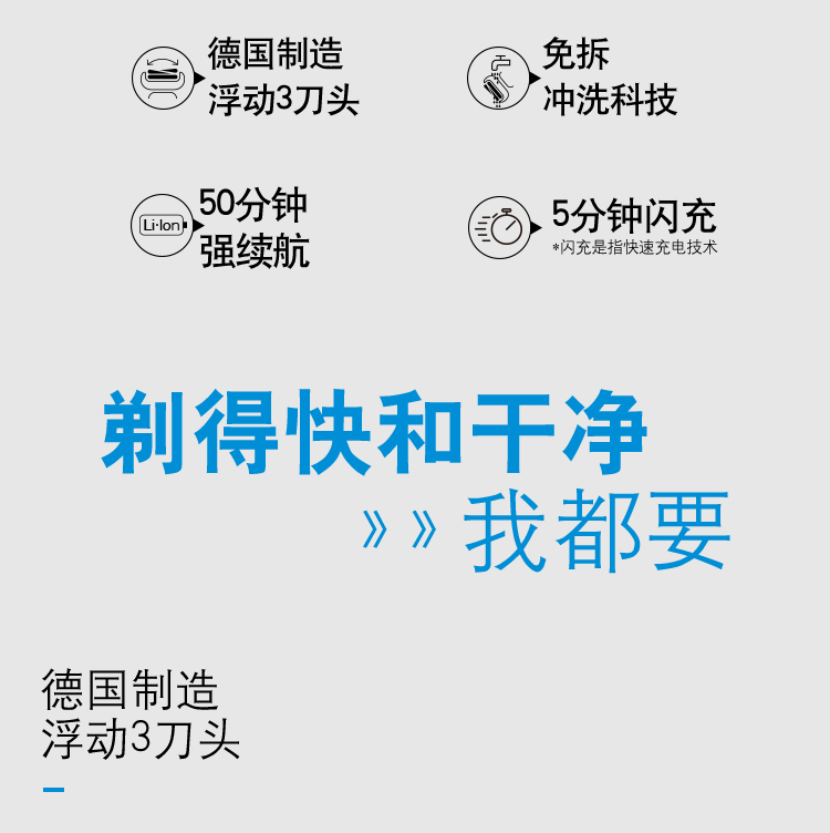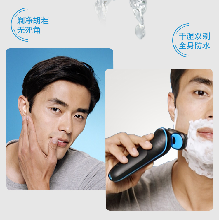 3項(xiàng)靈動(dòng)剃須原件,三個(gè)修剪原件獨(dú)立浮動(dòng),自動(dòng)調(diào)整剃須角度