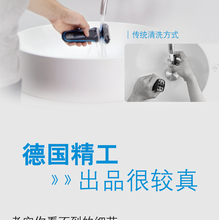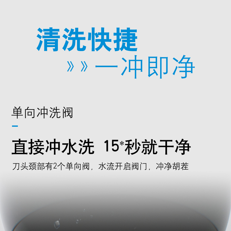 免拆沖洗科技,水龍頭直接沖洗,只需15秒即可沖洗掉80%胡渣,簡(jiǎn)單快捷,干凈衛(wèi)生
