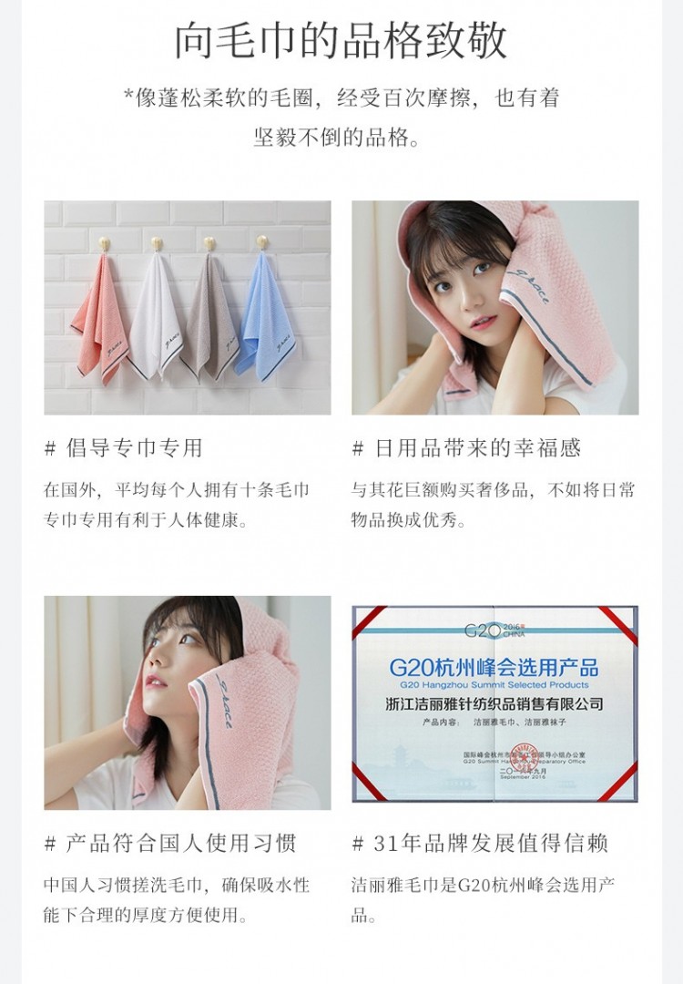 潔麗雅純棉毛巾 洗臉巾家用擦臉巾面巾 全棉吸水加厚毛巾套裝