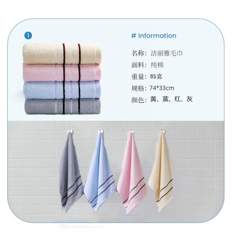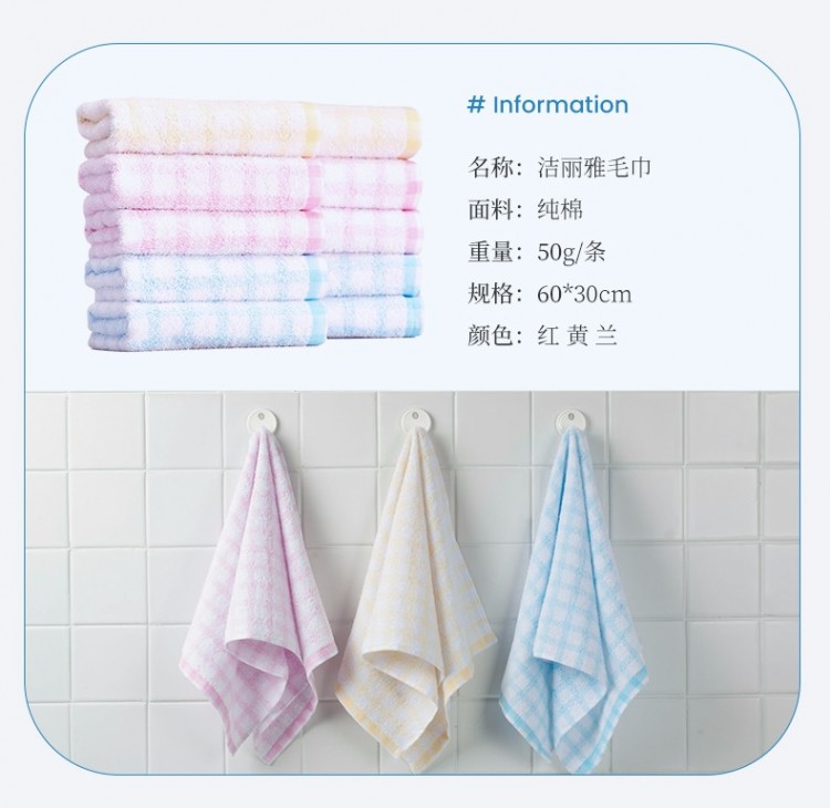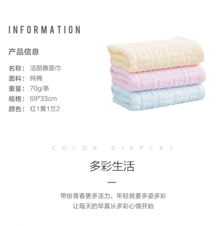 潔麗雅純棉洗臉毛巾 全棉面巾舒適吸水 毛巾繡字
