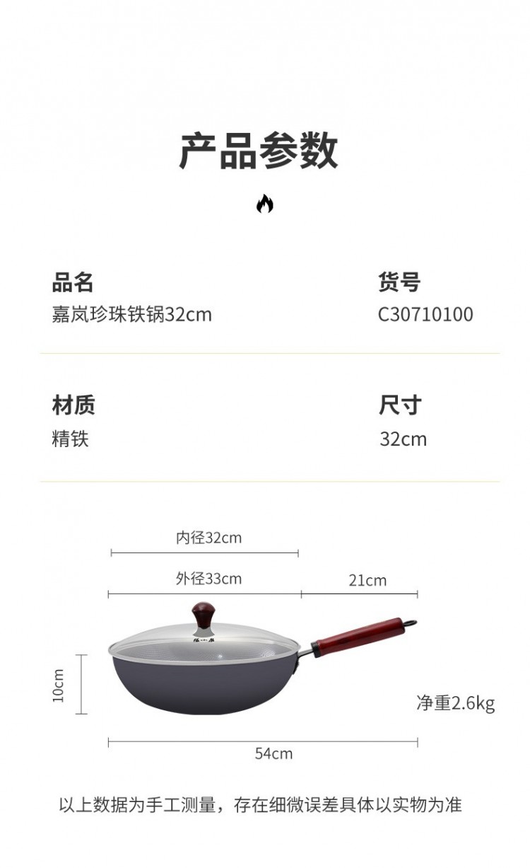 嘉嵐珍珠鐵鍋 家用炒菜鍋具少油煙 家用灶具炒鍋C30710100