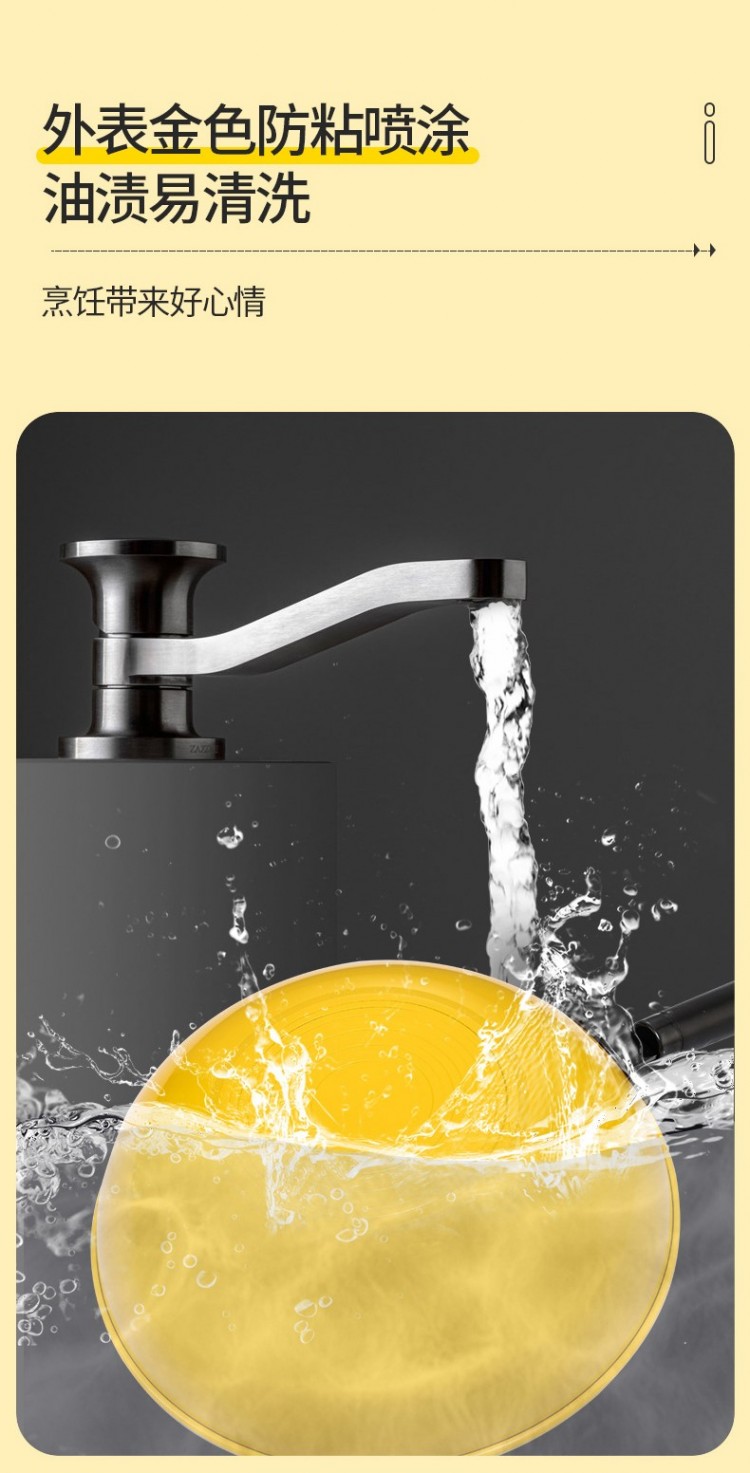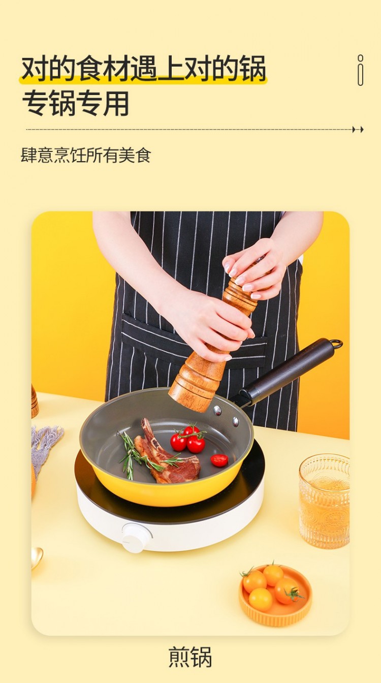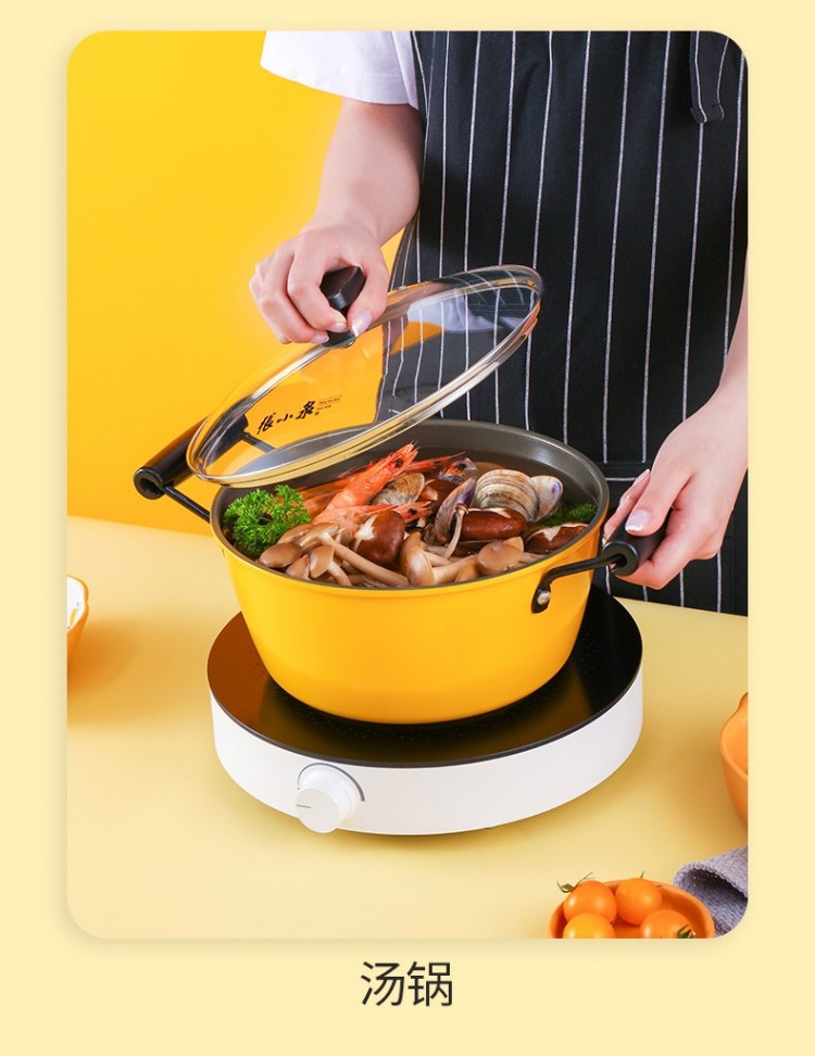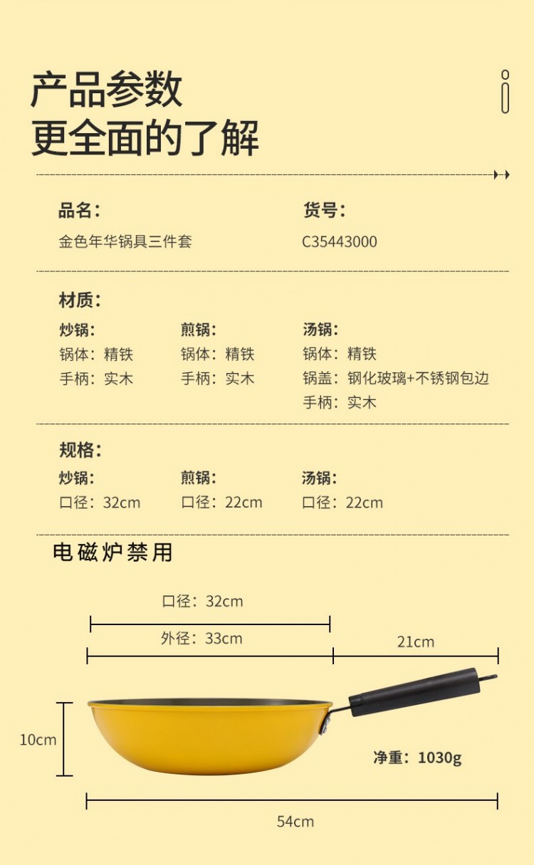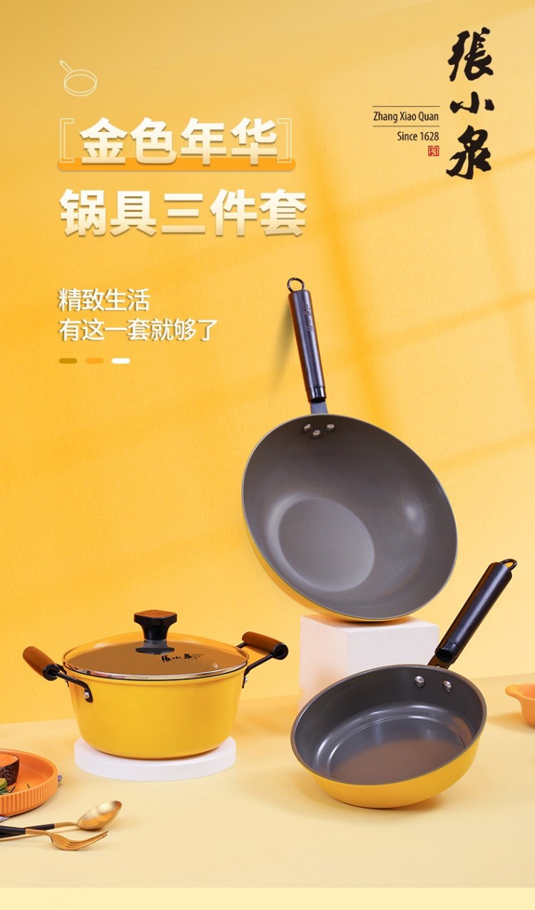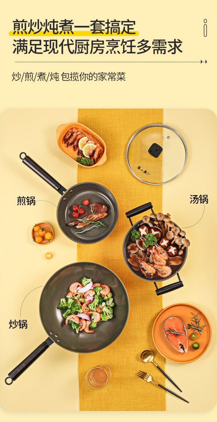 金色年華鍋具三件套 陶晶不粘鍋材料 耐磨防刮輕煙少油