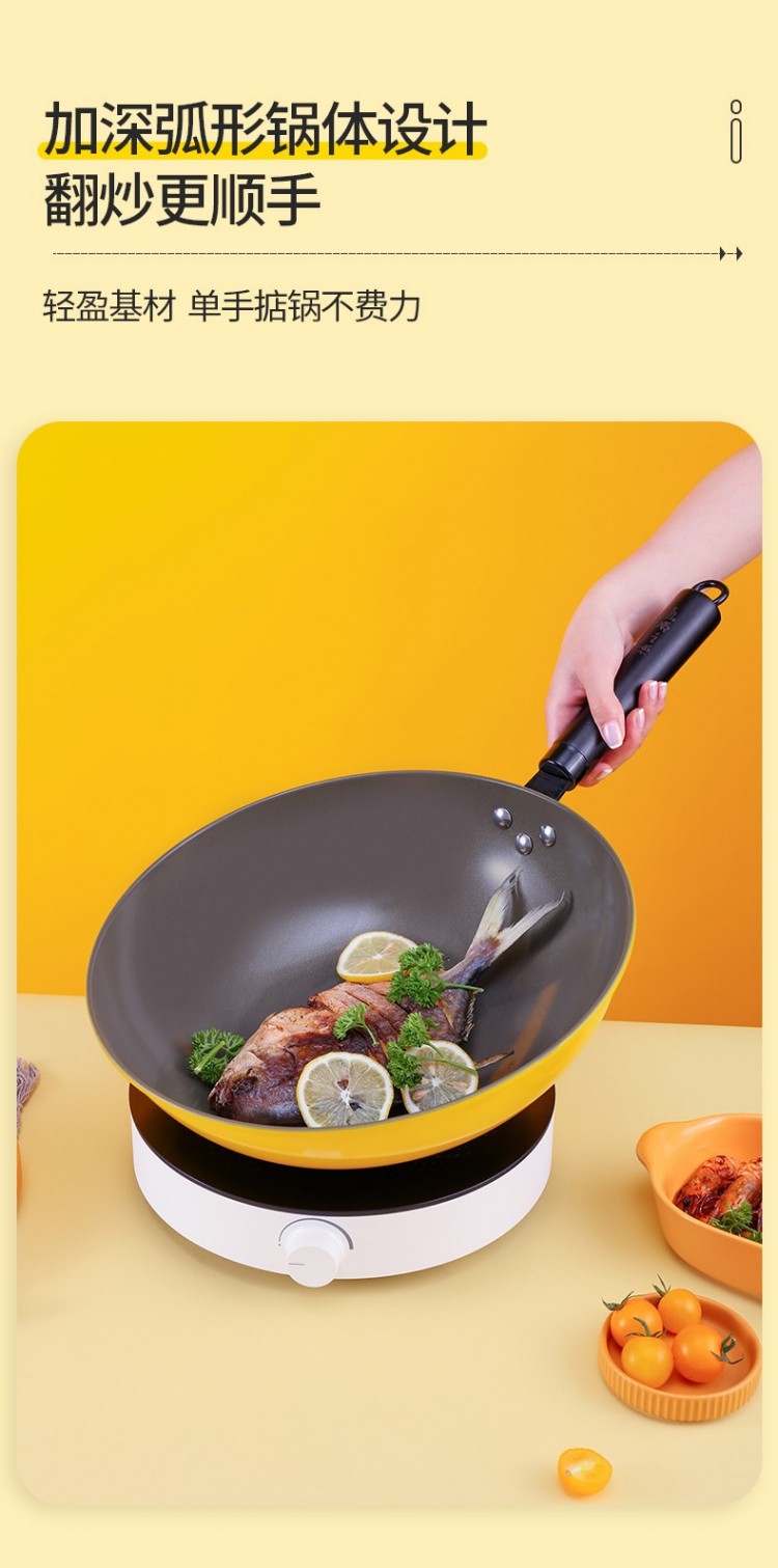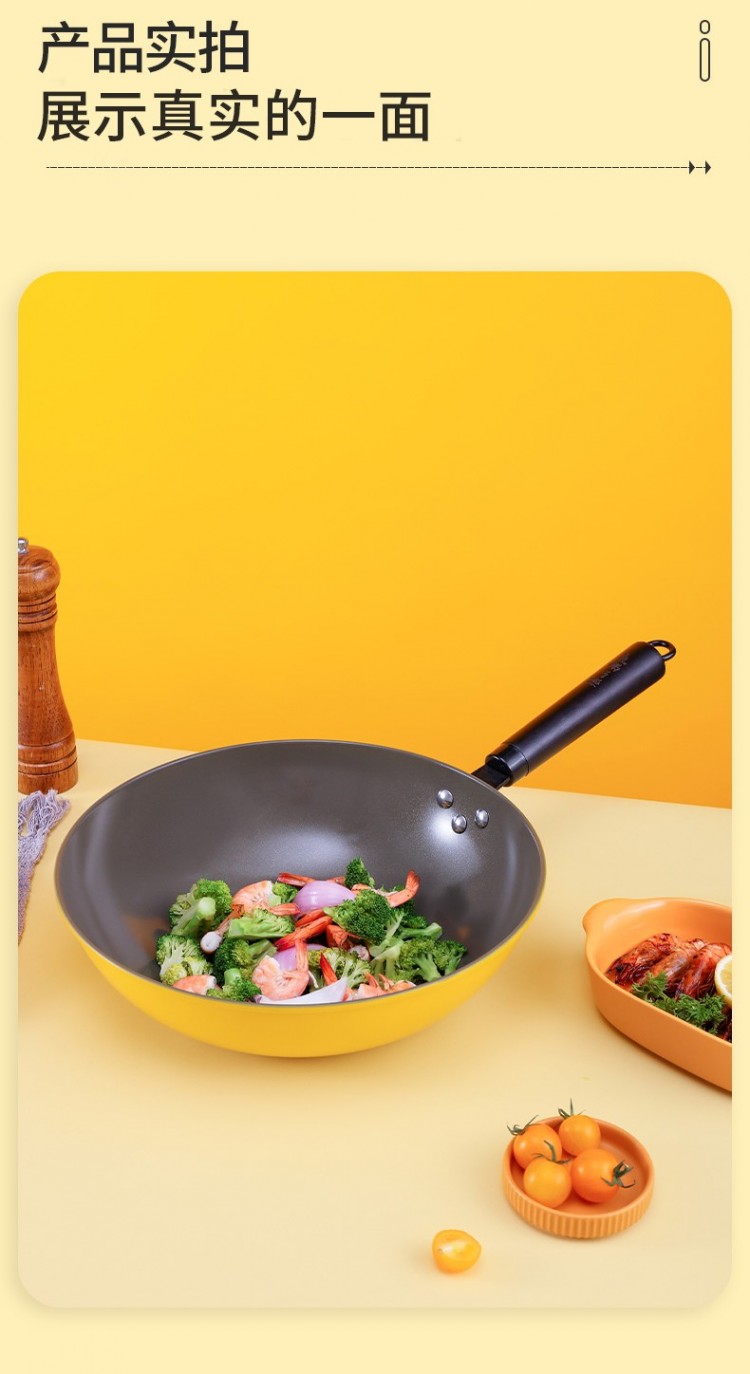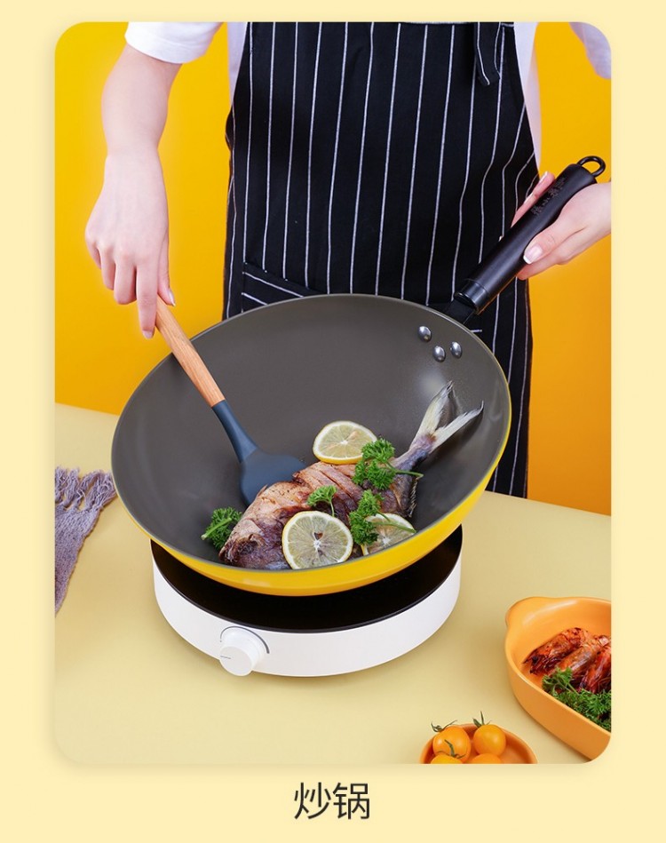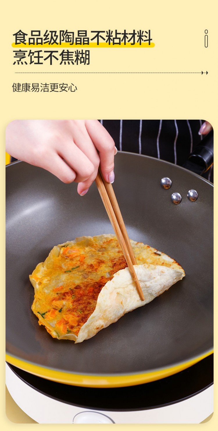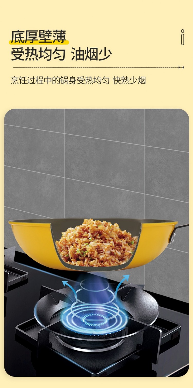 金色年華鍋具三件套 陶晶不粘鍋材料 耐磨防刮輕煙少油