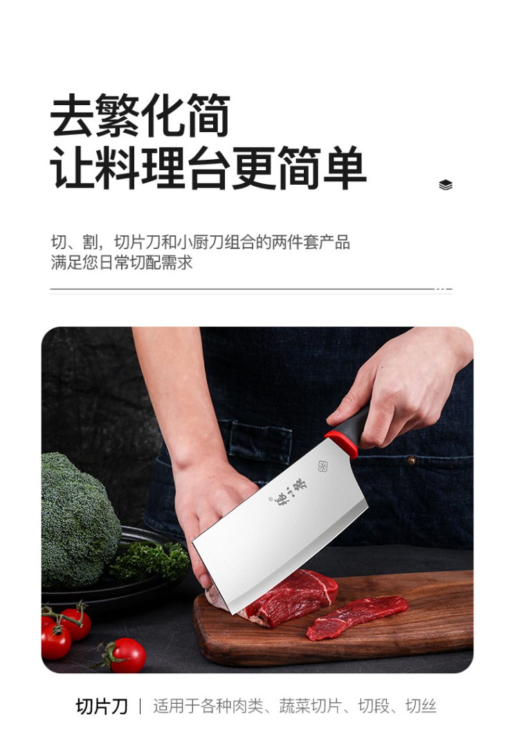 紅韻刀具兩件套 不銹鋼切片刀小廚刀 家用廚房刀具