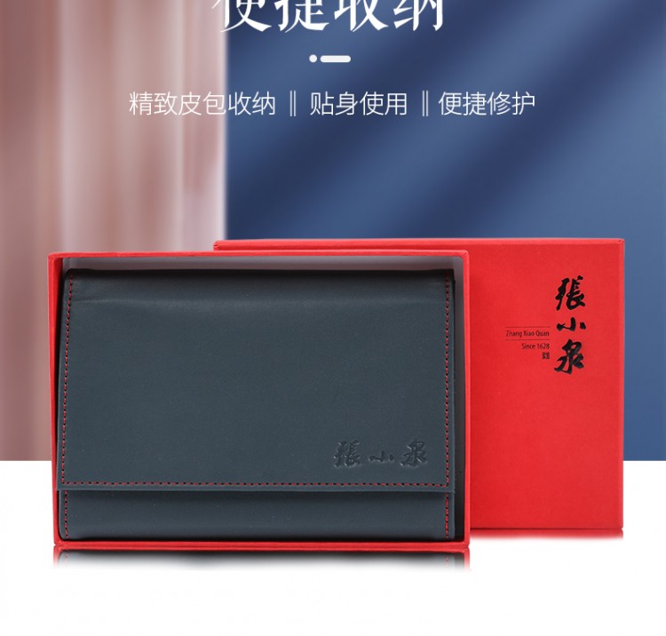 1、精致三折皮包,皮質(zhì)細(xì)膩柔軟,便捷修護(hù)。