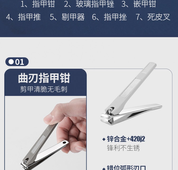 不銹鋼指甲剪修甲剪 美甲套裝 珍悅修甲套裝七件套H60327000