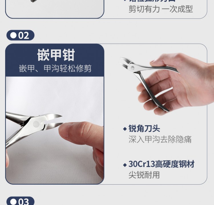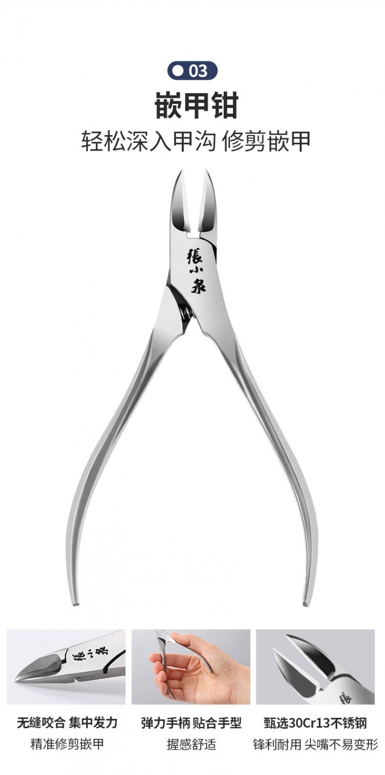 3、嵌甲鉗銳角刀頭,深入甲溝去除隱痛,高硬度鋼材尖銳耐用 。