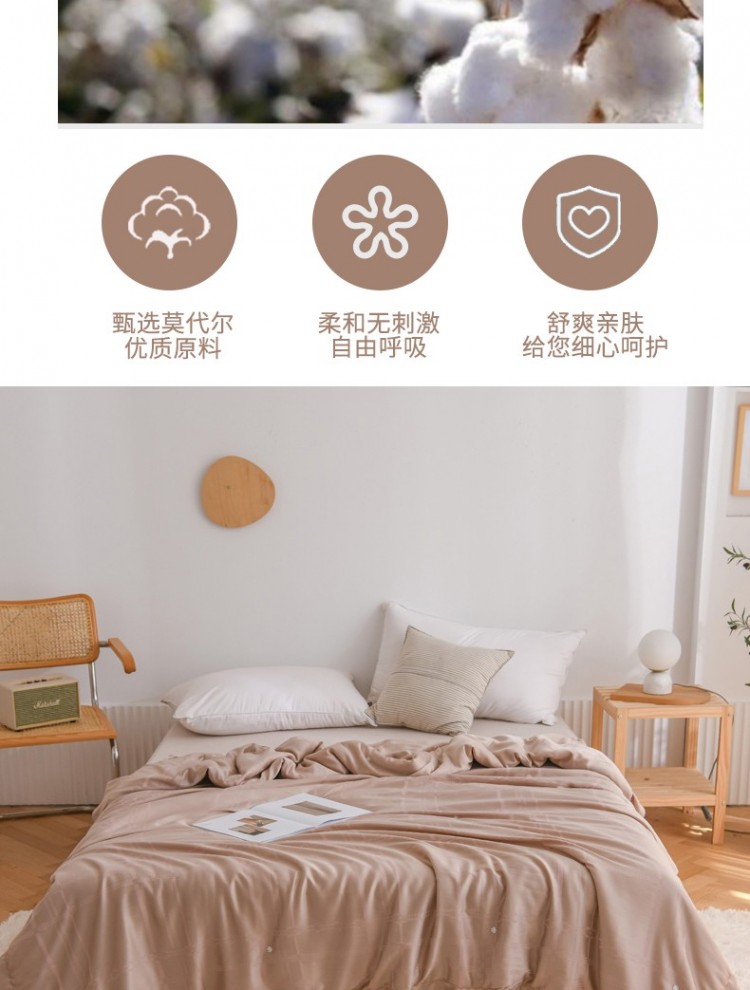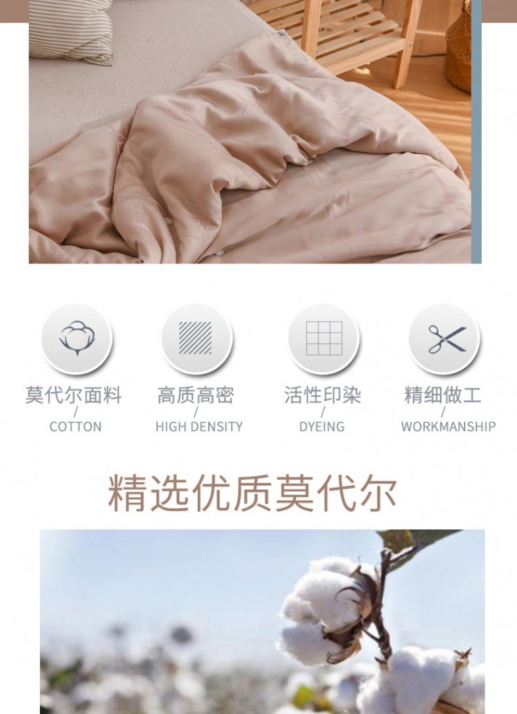 1:莫代爾面料,無比的吸濕性,成為夏日清涼首選。順滑的體驗感,讓使用更舒適。