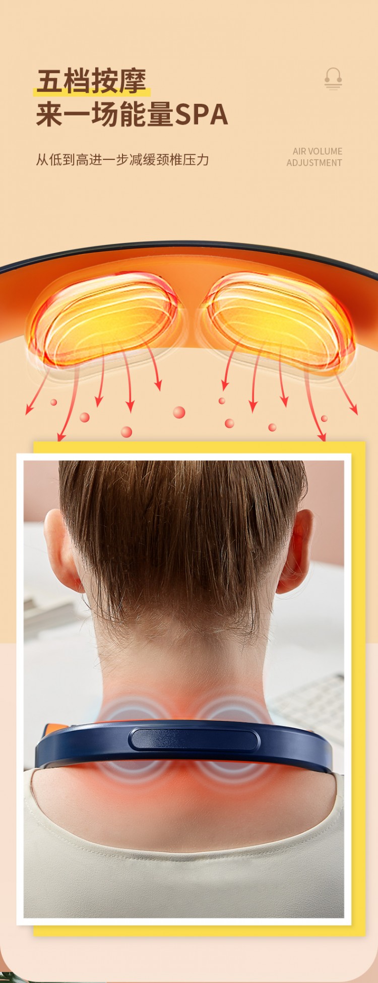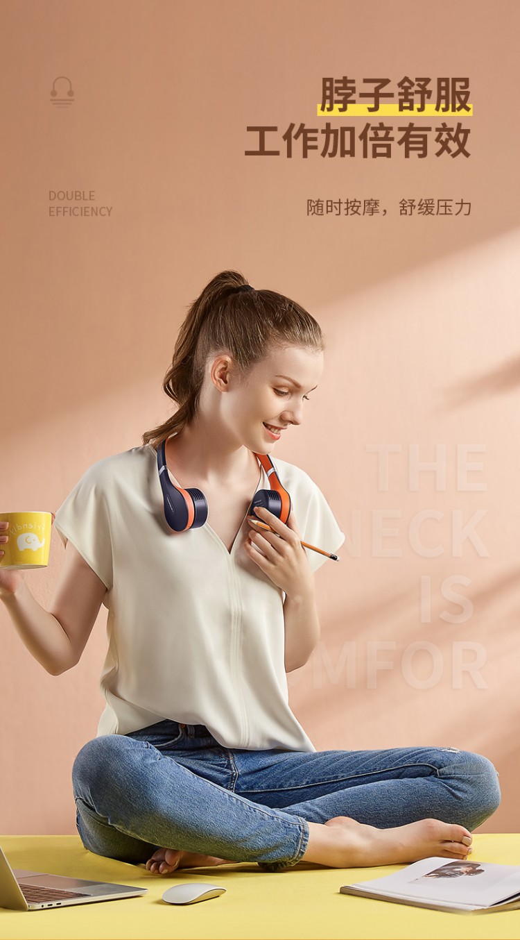 3.脈沖式按摩,續(xù)航配合五檔力度幫助頸部舒緩壓力。