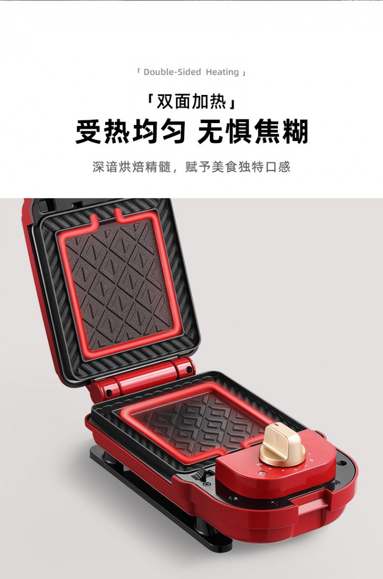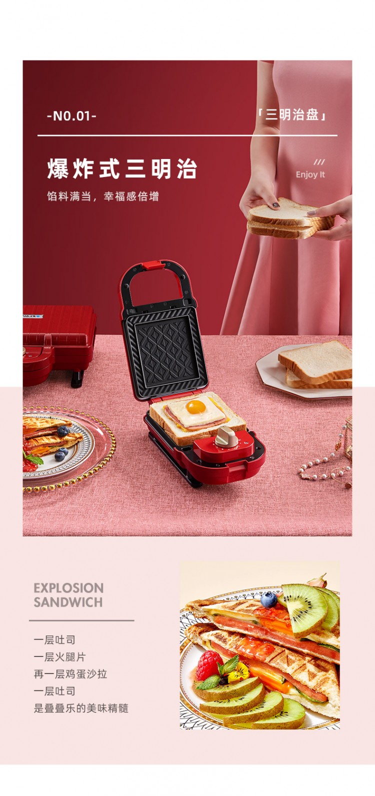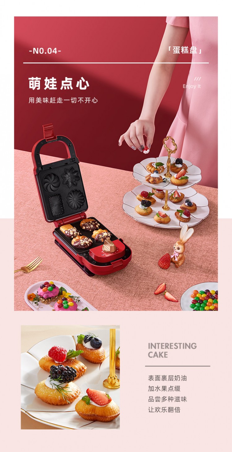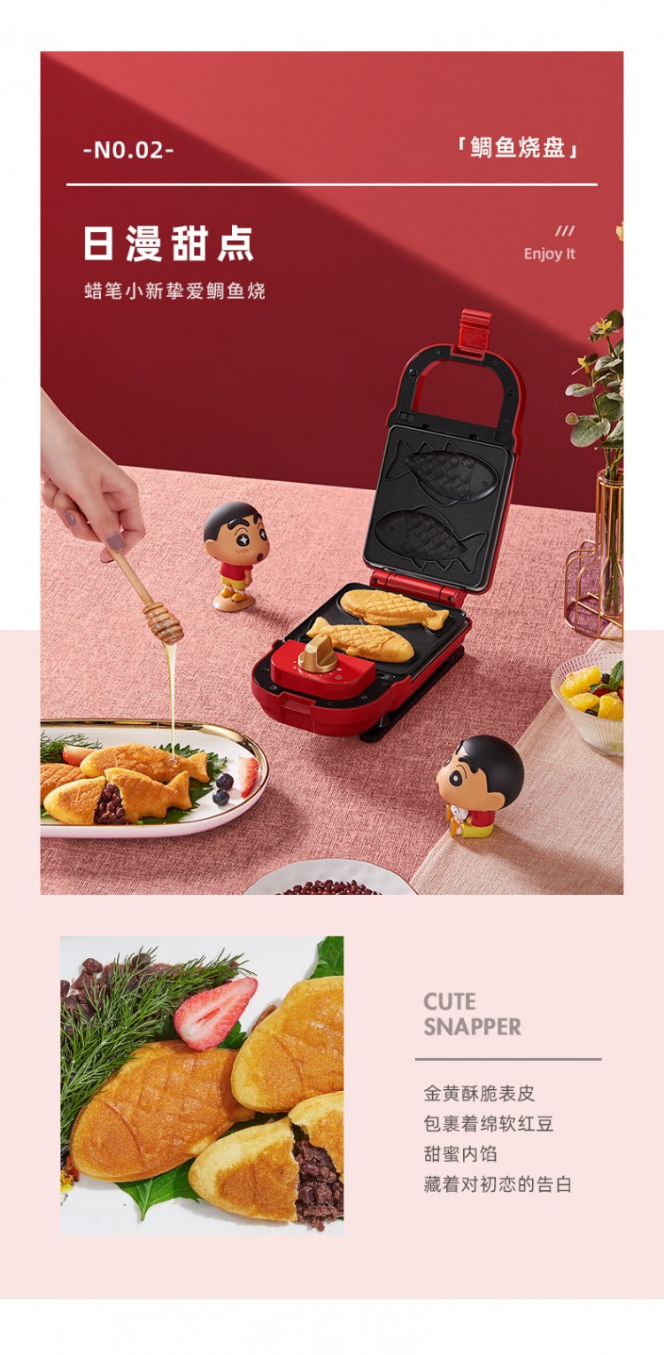 2.功能花樣多,多款烤盤,隨意切換,三明治、華夫餅、鯛魚燒、小蛋糕等;
