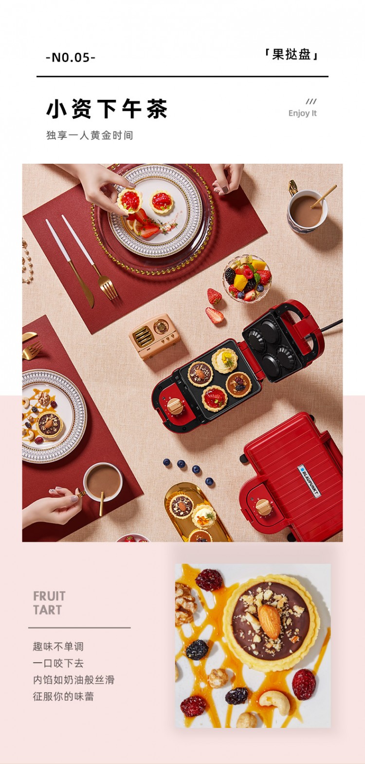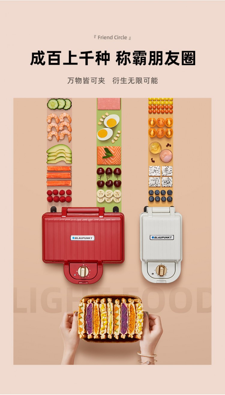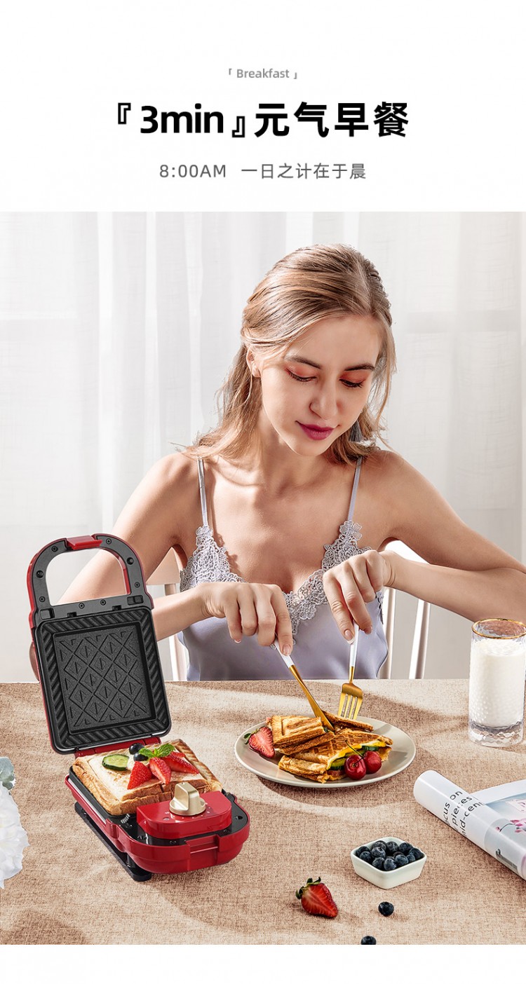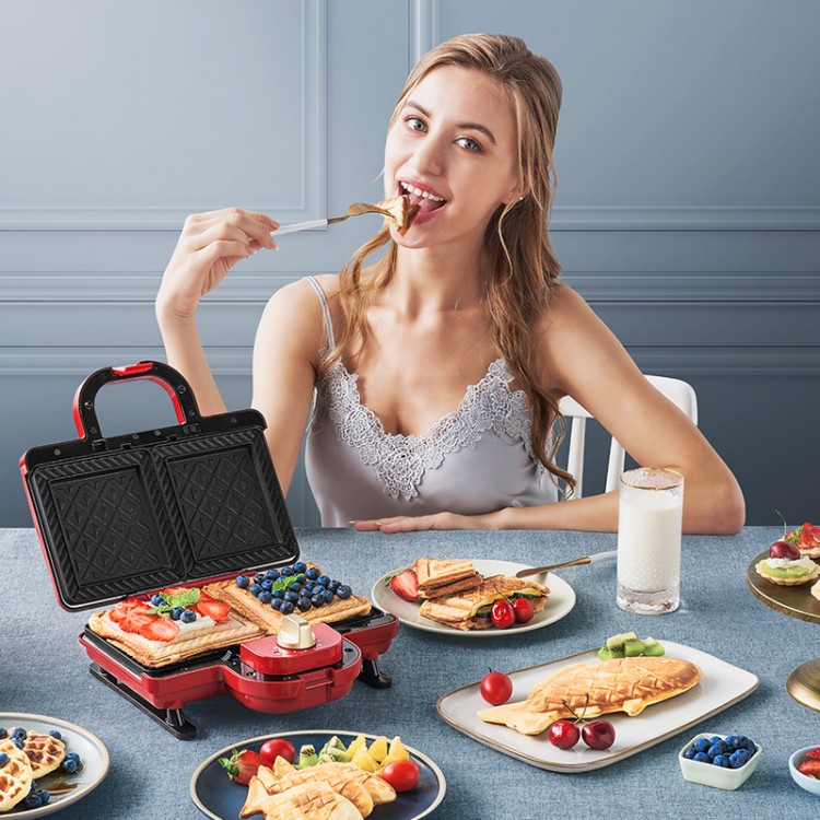 2.功能花樣多,多款烤盤,隨意切換,三明治、華夫餅、鯛魚燒、小蛋糕等;