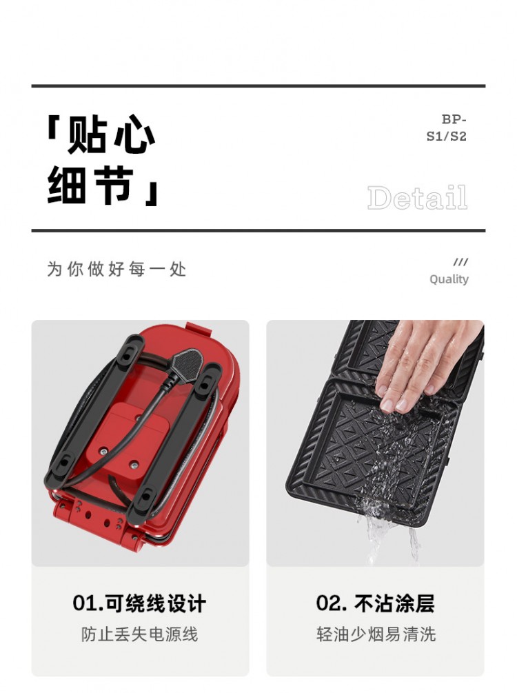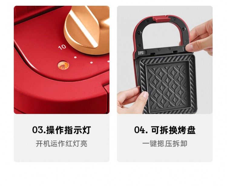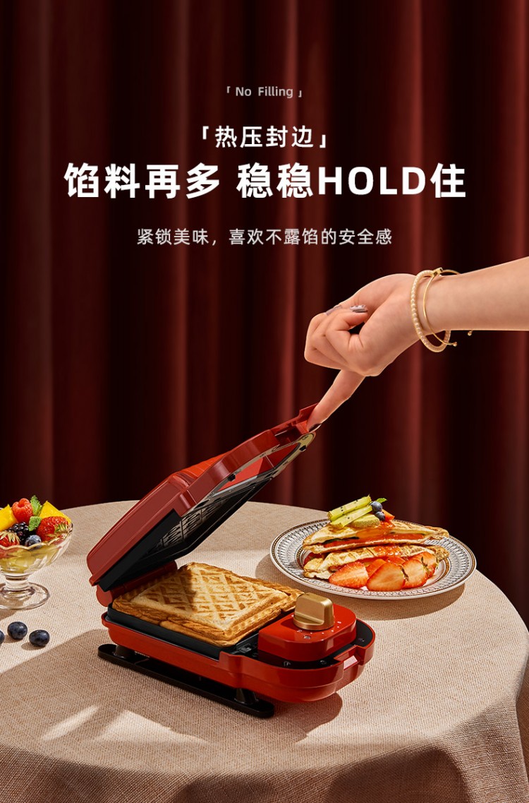 4.自動封邊設(shè)計,封邊不露餡,輕輕一夾 自動鎖住食材,防止醬汁亂濺;