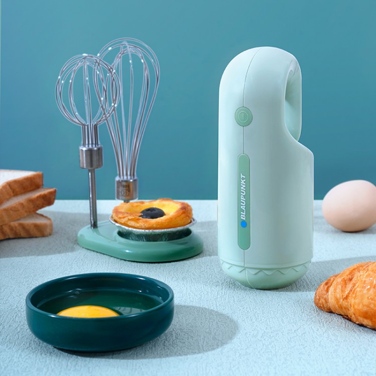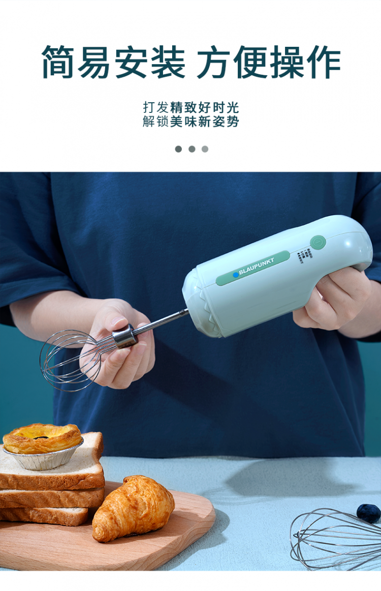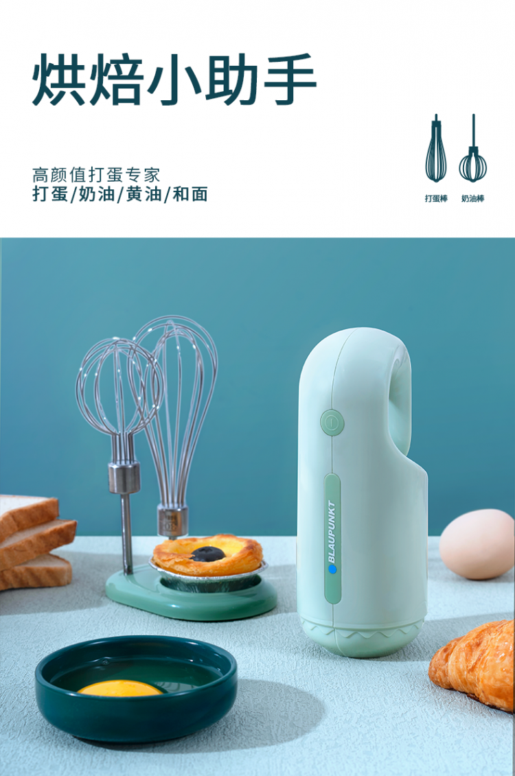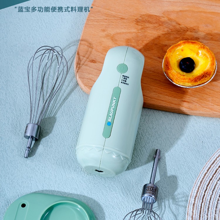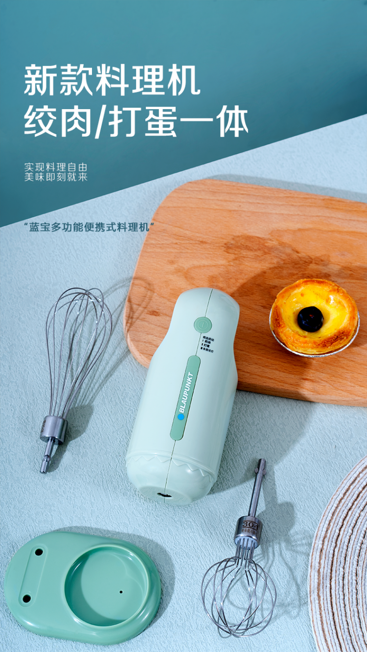 1.一機多用,手持可搭配打蛋棒打蛋和奶油棒打泡,裝上玻璃杯可料理食物;