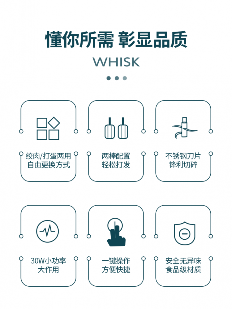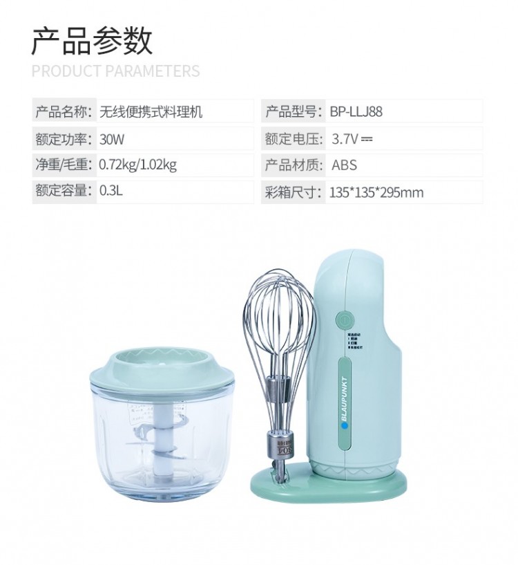 詳細信息 產(chǎn)品功能: 1.一機多用,手持可搭配打蛋棒打蛋和奶油棒打泡,裝上玻璃杯可料理食物; 2.豐富配件,專屬底座收納,擺放廚房更加整潔得體; 3.強力高轉電機每分鐘可高達14500轉,料理輕松完成; 4.雙擊啟動,三擋設計,一檔奶油、二檔打蛋、長按絞肉,功能簡單操作化繁為簡; 5.食品級不銹鋼刀片和攪拌棒,耐磨耐用易清洗。 ![]() ![]() ![]() ![]() ![]() ![]() ![]() |