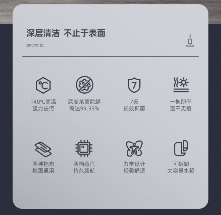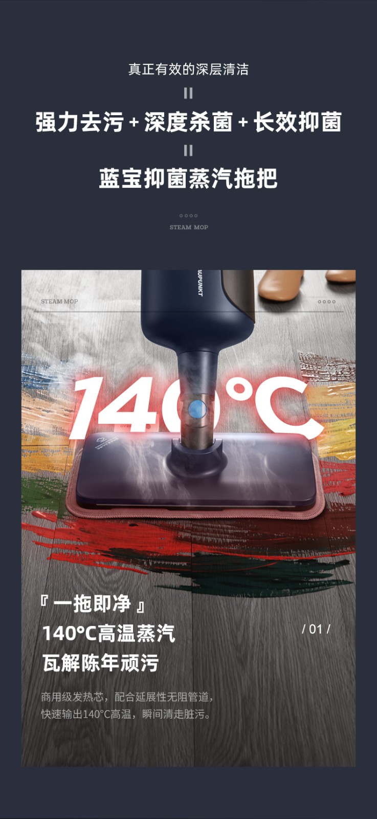 2.清潔能手,兼具燙衣服、擦玻璃、拖地、擦油煙機(jī)等各種衛(wèi)生死角強(qiáng)力去污殺菌;