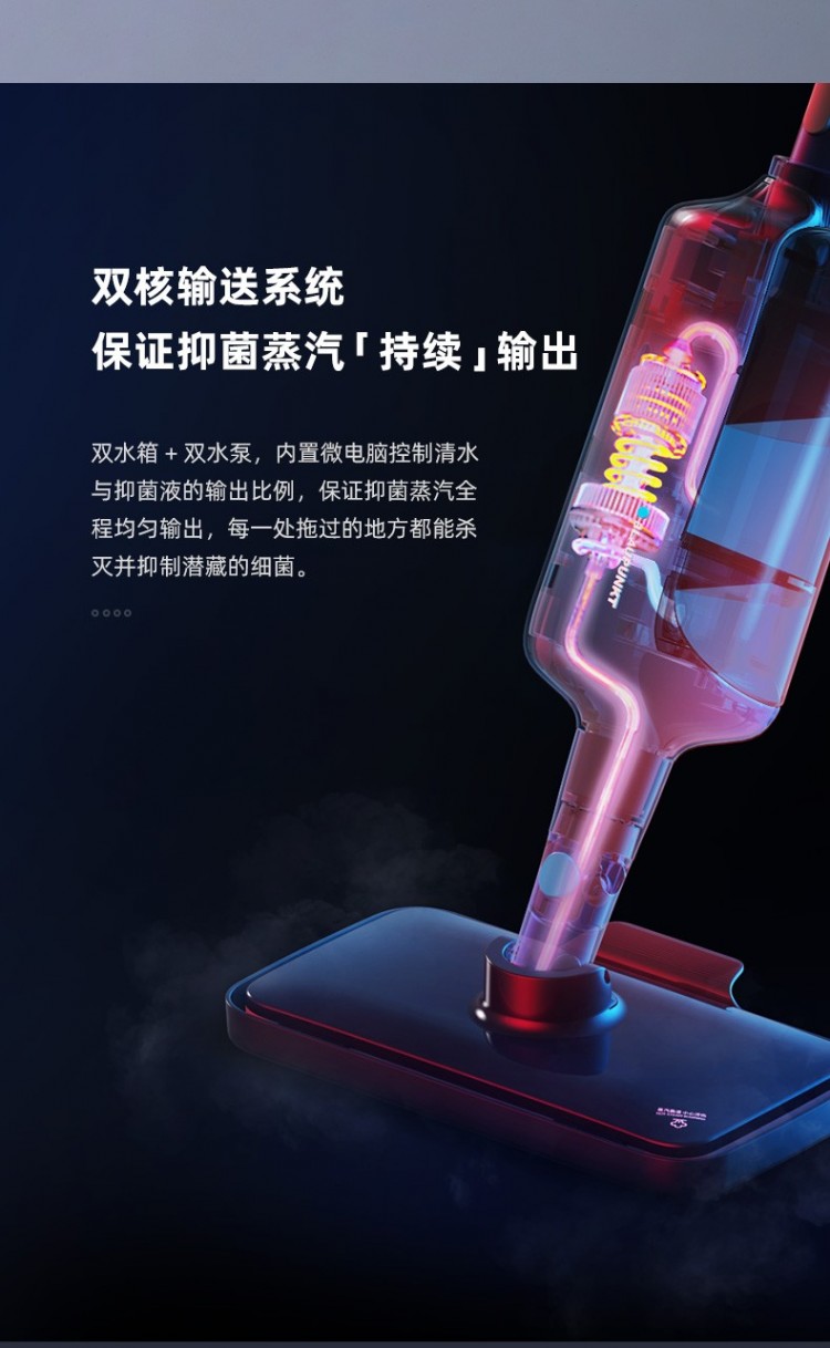 6.電磁泵無水偵測和干抽保護(hù),提高蒸汽拖把使用壽命。
