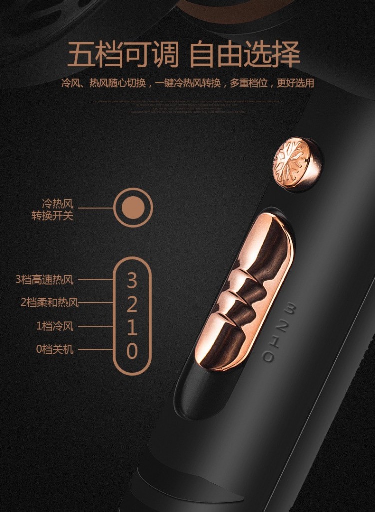 4.兩檔風(fēng)量設(shè)置、波紋絲造型發(fā)熱絲;