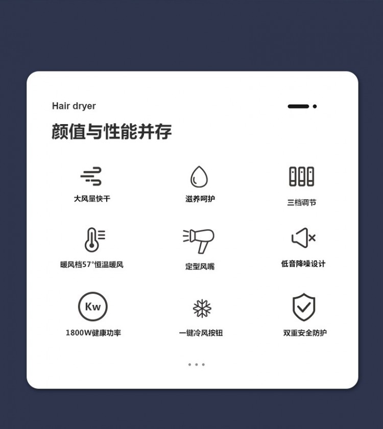 詳細(xì)信息 產(chǎn)品特點(diǎn): 1.創(chuàng)新螺旋風(fēng)網(wǎng)設(shè)計(jì)、風(fēng)量更大更集中; 2.360°旋轉(zhuǎn)風(fēng)嘴、幫助集中造型; 3.過熱保護(hù)裝置設(shè)計(jì)、以免產(chǎn)品過熱燒壞; 4.冷熱風(fēng)快速轉(zhuǎn)換開關(guān)設(shè)計(jì); 5.ABS外殼烤漆工藝、大氣高端。 ![]() ![]() ![]() ![]() ![]() ![]() ![]() ![]() ![]() ![]() ![]() ![]() ![]() ![]() ![]() ![]() ![]() ![]()  |