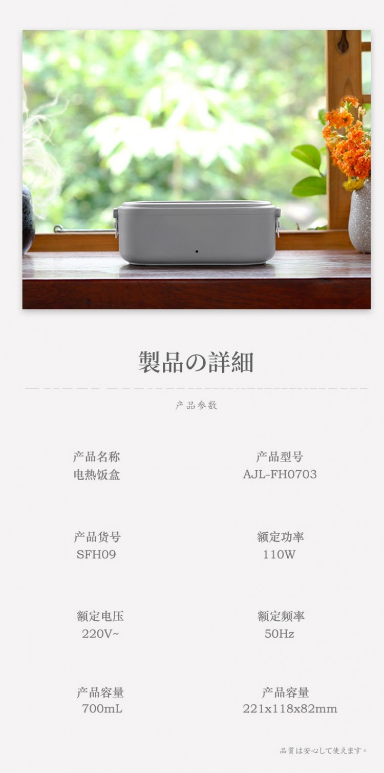 詳細(xì)信息 產(chǎn)品特點(diǎn): 1.機(jī)身工藝:全新PP外殼; 2.內(nèi)膽材質(zhì):食品級(jí)不粘鍋涂層內(nèi)膽 3.上蓋材質(zhì):全新PP材質(zhì)(帶排氣孔); 4.安全保護(hù):防干燒保護(hù),自動(dòng)斷電功能。 5.操控面板:一鍵啟動(dòng),簡(jiǎn)單方便; 6.360度沸點(diǎn)微循環(huán)加熱至70度恒溫保溫。 ![]() ![]() ![]() ![]() ![]() ![]() ![]() ![]() ![]() ![]() ![]() ![]() ![]() ![]() ![]() ![]() ![]() ![]() ![]() ![]() |