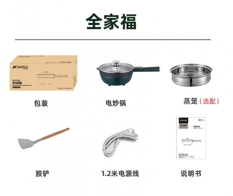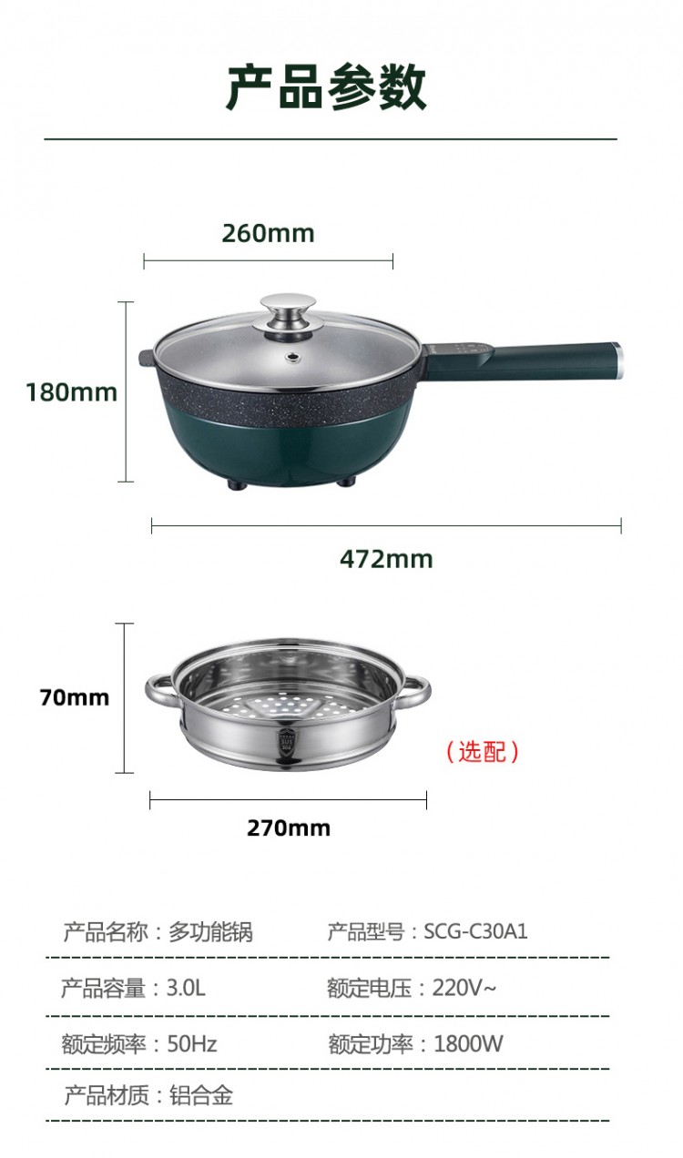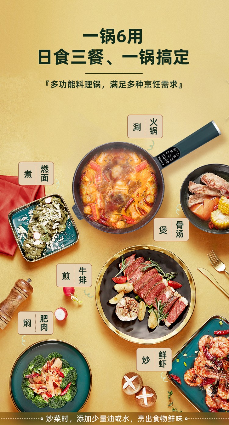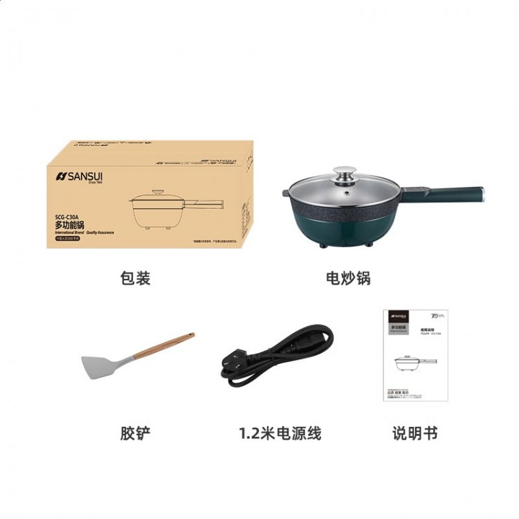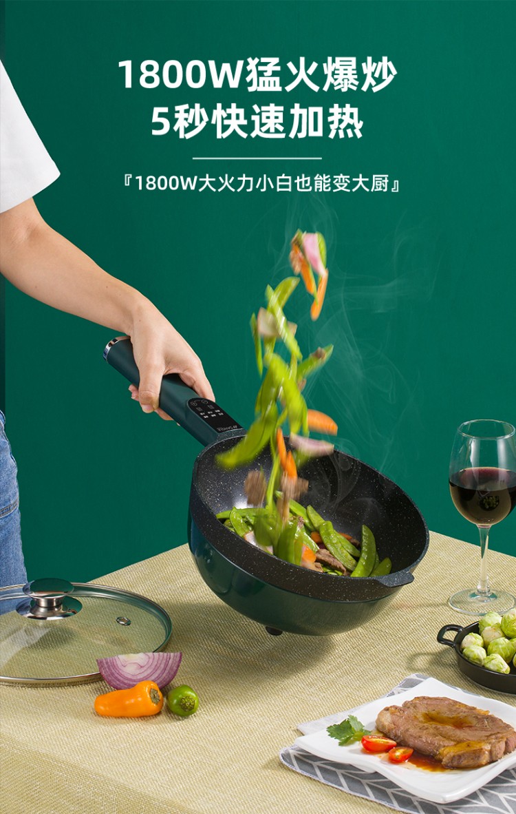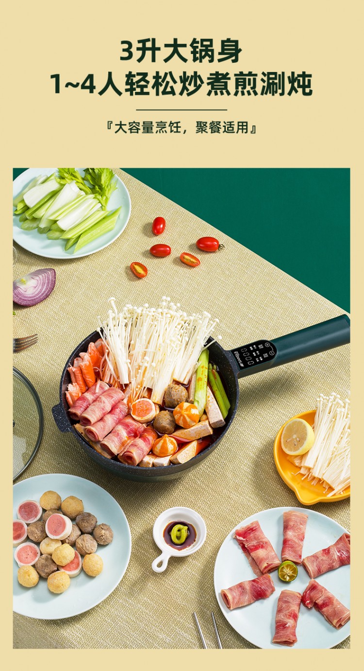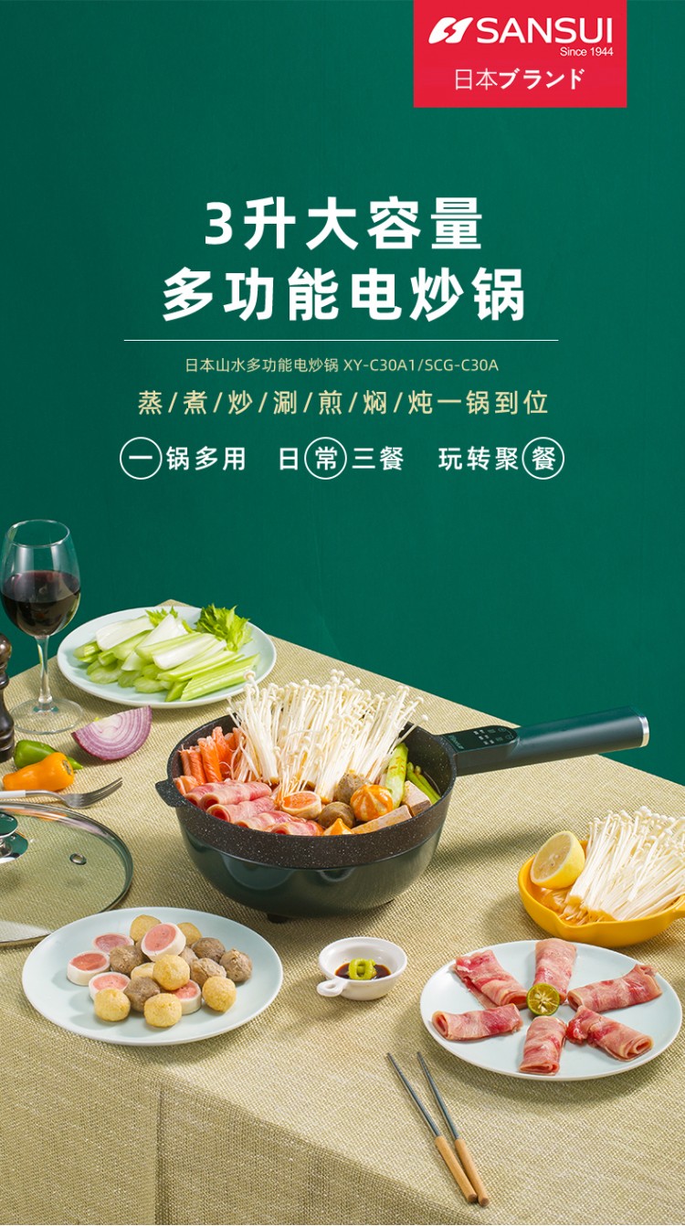 山水電炒鍋 多功能電煮鍋電火鍋 家用一體式不粘鍋電炒菜鍋