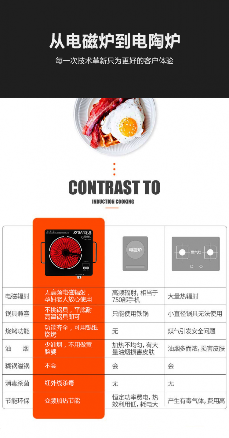 4.經(jīng)久耐用不擇鍋具、磨砂面黑晶面板;