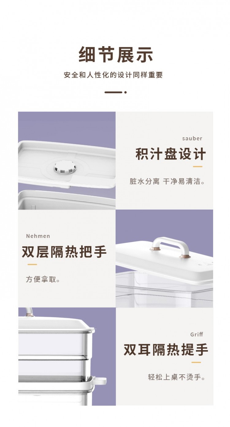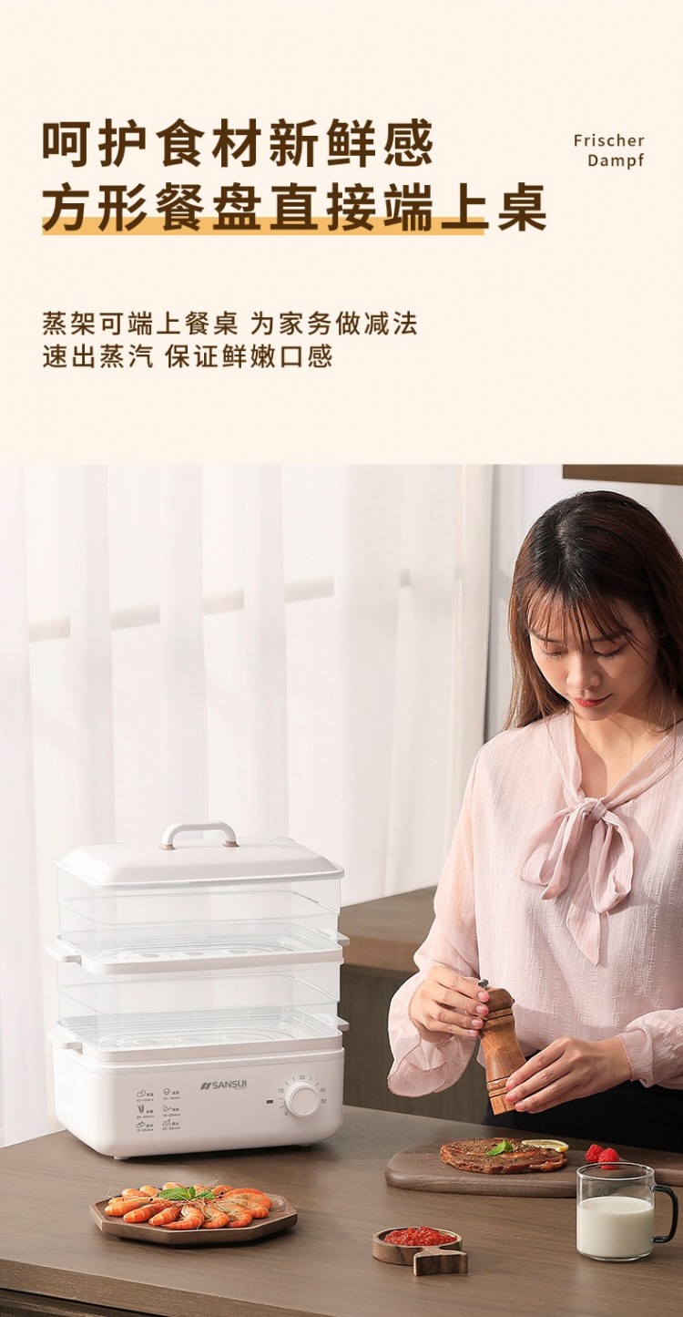詳細(xì)信息 產(chǎn)品特點(diǎn): 1.可視化透明機(jī)身,食材情況一目了然; 2.食品級(jí)透明材質(zhì),飲食更有安全感; 3.10升大容量,日常、聚餐無(wú)壓力; 4.雙層結(jié)構(gòu)可靈活組裝,單層雙層隨心轉(zhuǎn)換; 5.設(shè)有接水盤(pán),凈水臟水分離,干凈一清潔; 6.0-50分鐘定時(shí)旋鈕,因材而異。![]() ![]() ![]() ![]() ![]() ![]() ![]() ![]() ![]() ![]() ![]() ![]() ![]() ![]() ![]() |