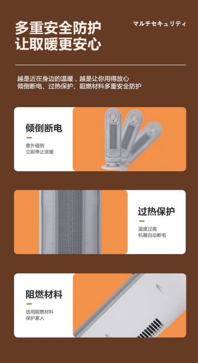4.5重安全保護(hù)、傾倒斷電功能、阻燃耐高溫、過熱斷電保護(hù)。
