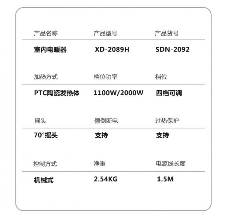 詳細(xì)信息 產(chǎn)品特點(diǎn): 1.2000W大功率、70°廣角搖頭; 2.ECO恒溫節(jié)能、3秒極速升溫、PTC陶瓷發(fā)熱; 3.輕音貫流風(fēng)輪設(shè)計(jì)風(fēng)距更長(zhǎng)出風(fēng)更柔、四季可用; 4.5重安全保護(hù)、傾倒斷電功能、阻燃耐高溫、過熱斷電保護(hù)。 ![]() ![]() ![]() ![]() ![]() ![]() ![]() ![]() ![]() ![]() ![]() ![]() ![]() ![]() ![]() ![]() ![]() |