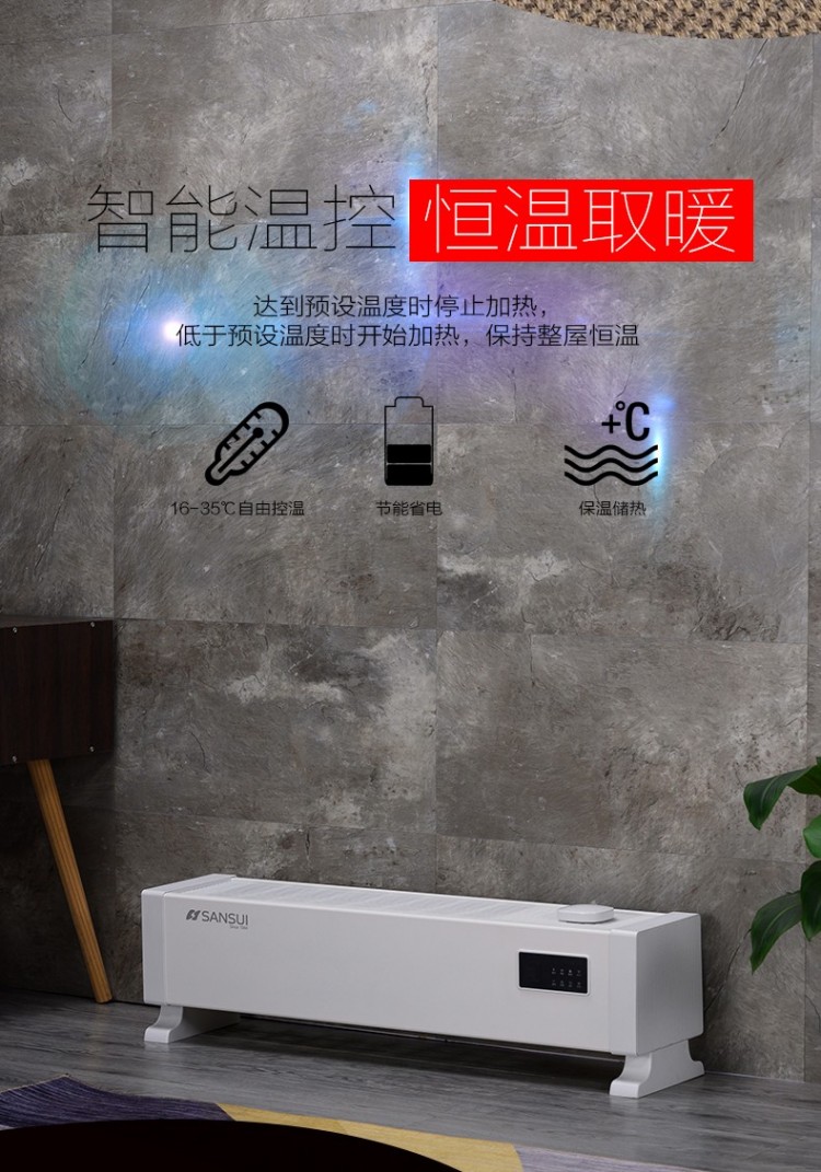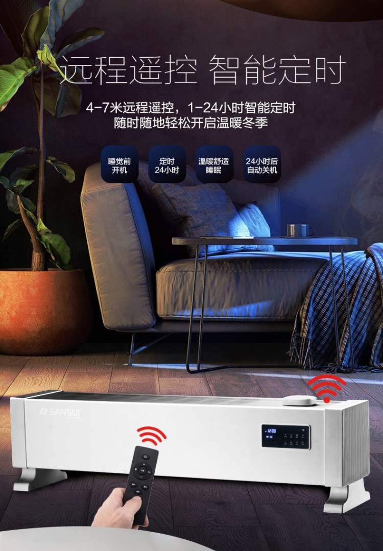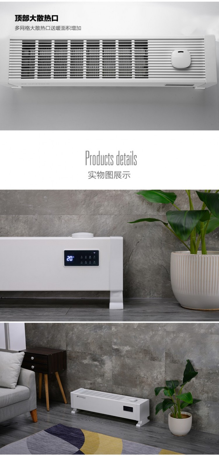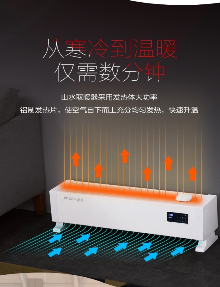 山水家用踢腳線取暖器 遠(yuǎn)程智能操控取暖器批發(fā)廠家