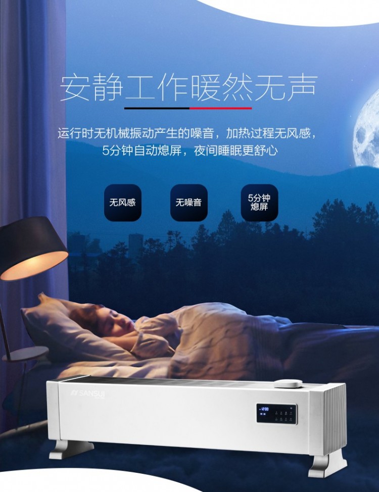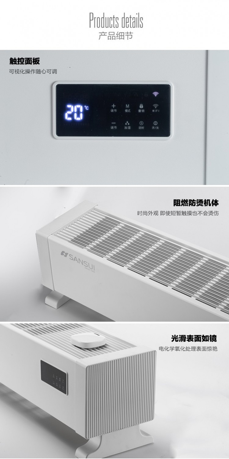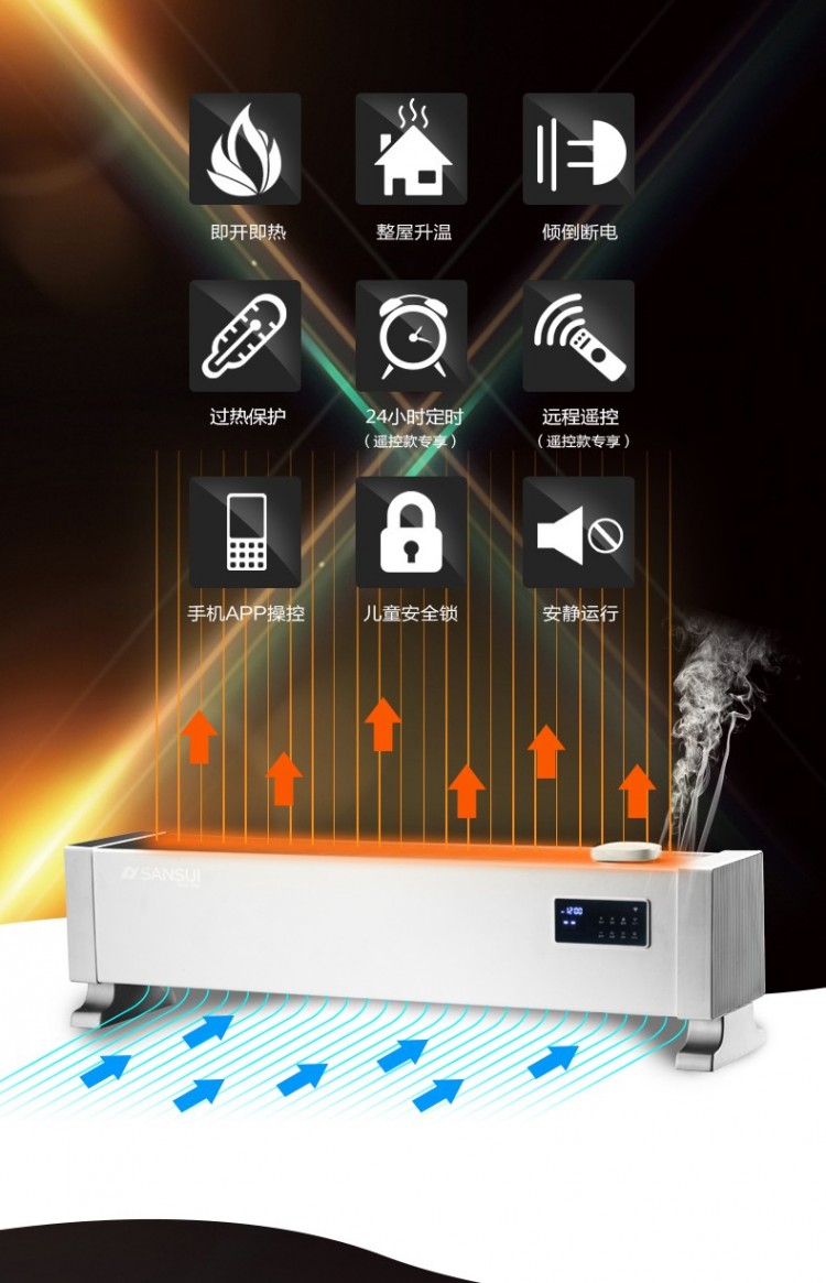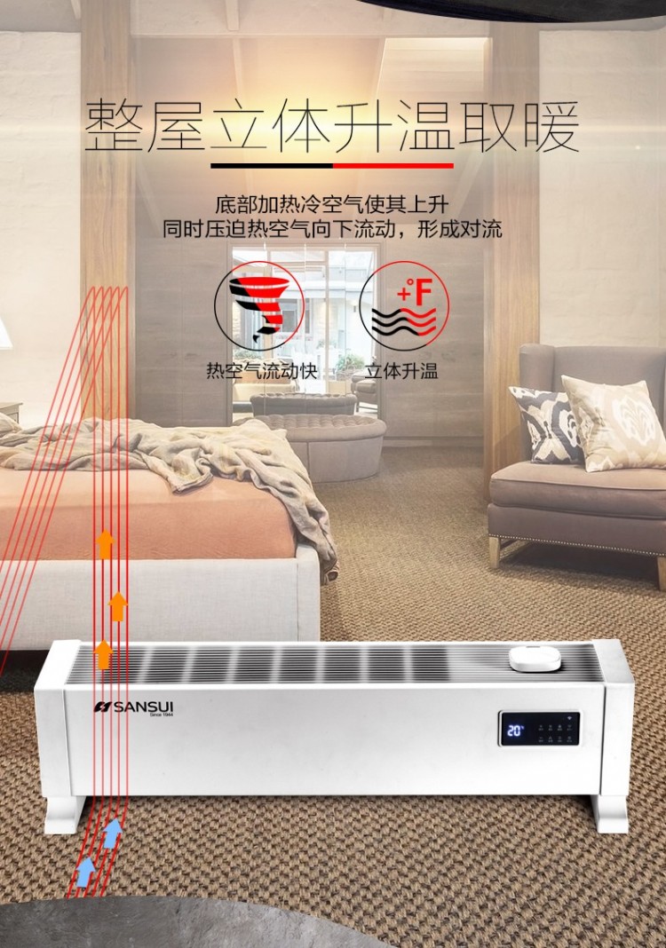 山水家用踢腳線取暖器 遠(yuǎn)程智能操控取暖器批發(fā)廠家
