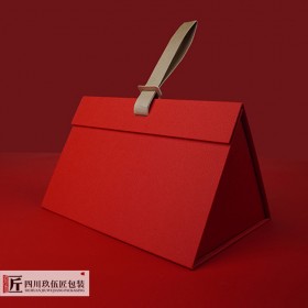 紅色PU皮充皮紙創(chuàng)意三角形化妝品禮盒定制創(chuàng)意異形禮盒定制