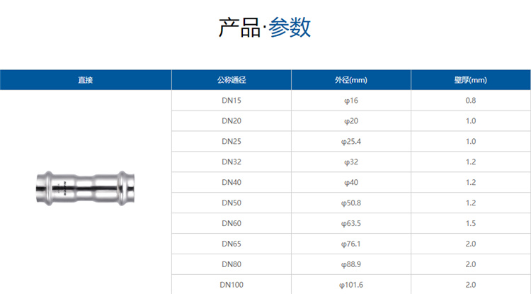 雙卡壓(國(guó)標(biāo))直接對(duì)接直通水管管件 304不銹鋼水管直連管件過(guò)橋彎