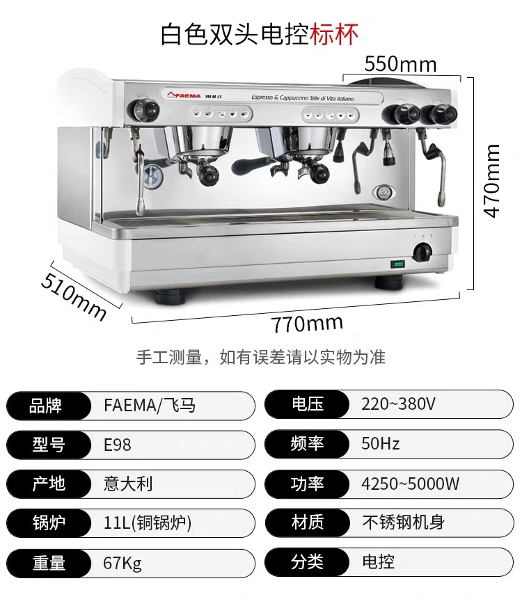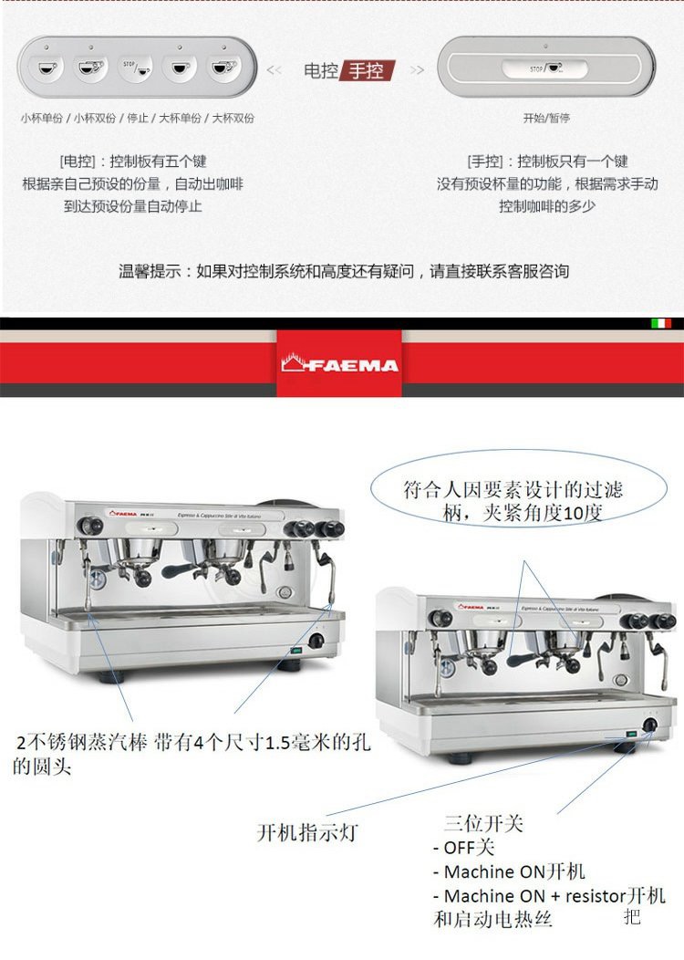 咖茶世家 FAEMA飛馬 E98UP新款 商用半自動高杯咖啡機(jī)