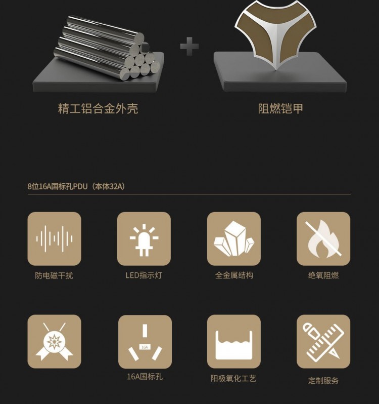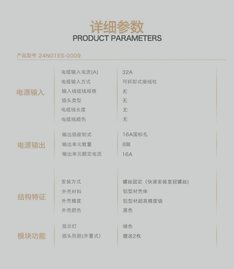 突破(M&G) 24N01NS-0009 PDU機(jī)柜插座 8位16A插孔 32A插線板 不帶連接器