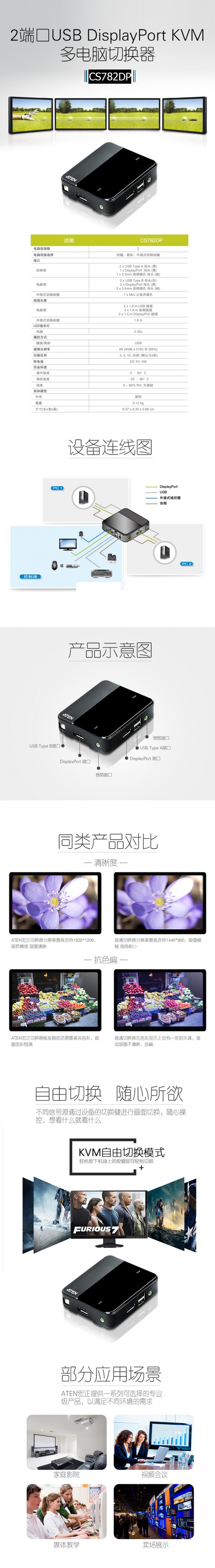 隨著高畫質(zhì)影像應(yīng)用需求持續(xù)增長(zhǎng)以及DisplayPort技術(shù)快速演進(jìn),具備4K功能的計(jì)算機(jī)與顯示器已被廣泛使用于各式高畫質(zhì)圖像處理與商業(yè)活動(dòng)上。CS782DP - ATEN支持4K分辨率KVM多電腦切換器,采用符合先進(jìn) DisplayPort 規(guī)范的技術(shù), 能夠滿足對(duì)高畫質(zhì)應(yīng)用的多元市場(chǎng)需求與各種使用情境。