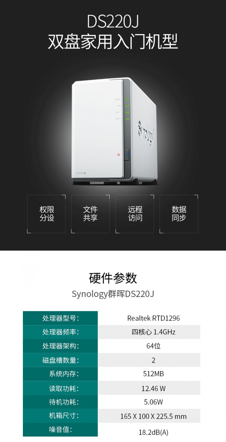 Synology 群暉 DS220j 家用NAS網(wǎng)絡(luò)存儲(chǔ)器服務(wù)器入門級(jí)NAS個(gè)人云存儲(chǔ)私有云DS218j升級(jí)版