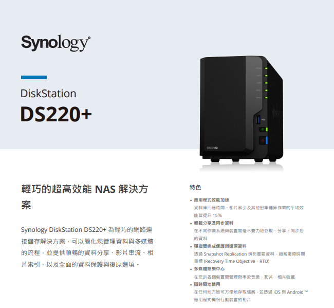 Synology群暉 DS220+ 2盤位 入門級(jí) 家用 NAS 網(wǎng)絡(luò) 存儲(chǔ) 服務(wù)器 DS218+升級(jí)版 支持盤位拓展