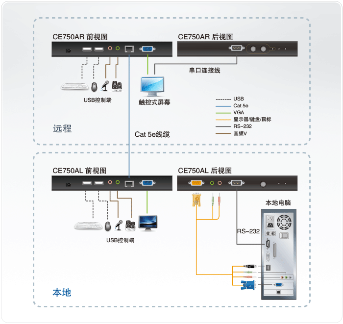 通過(guò)Cat 5e 線纜連接本地與遠(yuǎn)程設(shè)備,遠(yuǎn)可達(dá)200 米