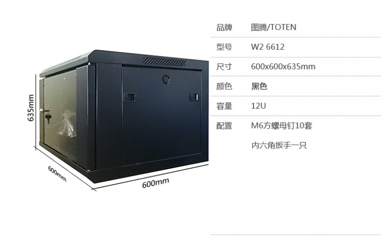四川 成都 弱電解決方案商 圖騰TOTEN W26612 掛墻柜 12U 網(wǎng)絡(luò)布線交換監(jiān)控機(jī)柜600*600*635