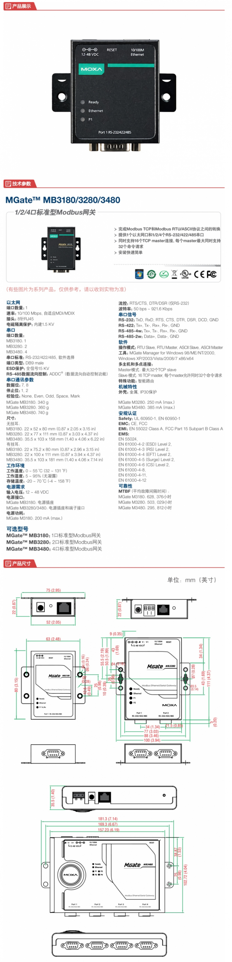 摩莎 MOXA IT解決方案商 MGate MB3180網(wǎng)關(guān) 1口標(biāo)準(zhǔn)Modbus