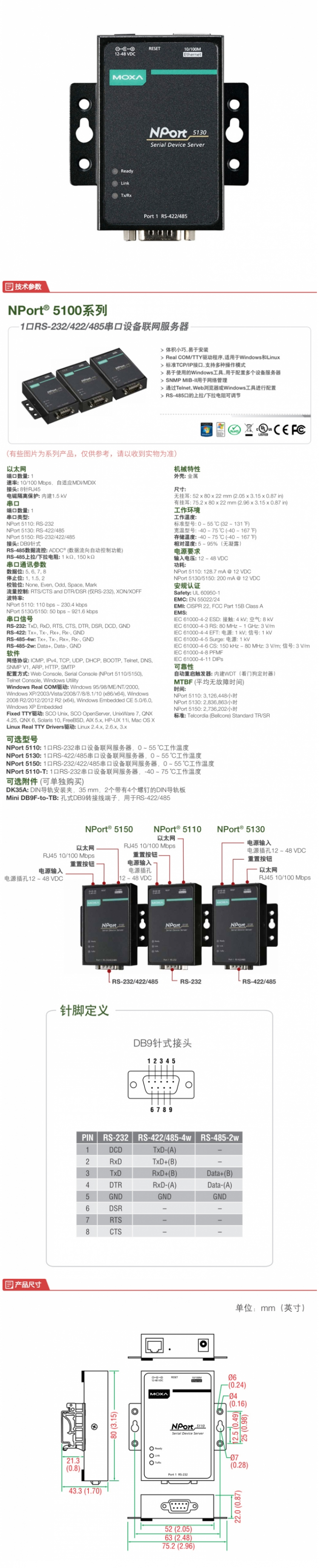摩莎 MOXA 四川 IT解決方案商 NPort 5130 1口RS-422/485串口設備聯(lián)網(wǎng)服務器 0~55°C工作溫度